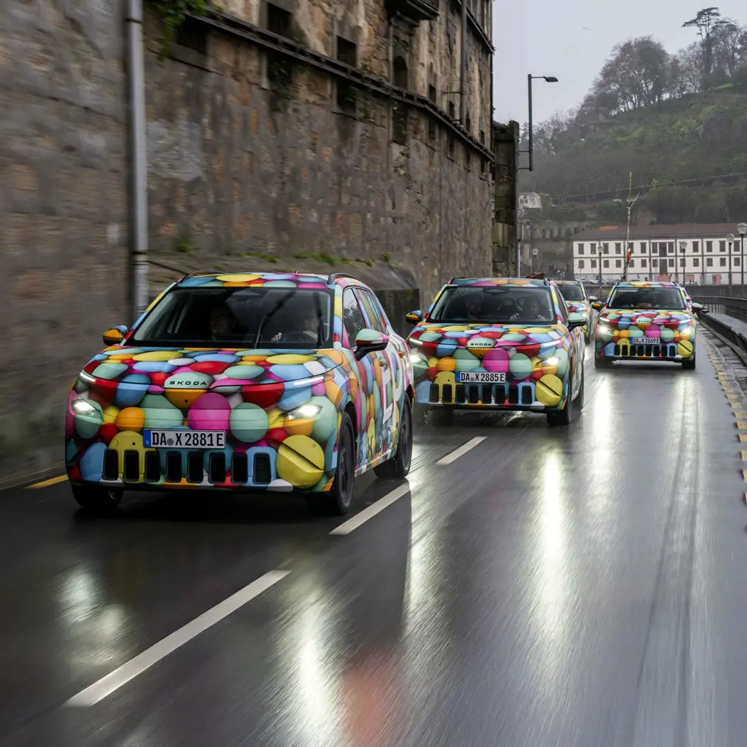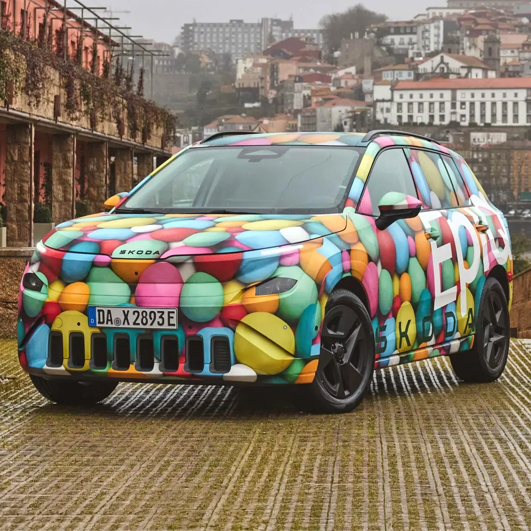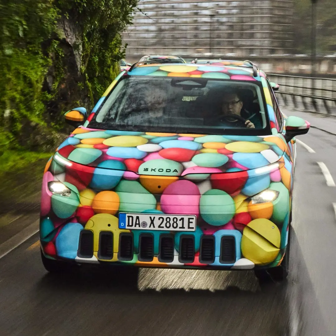 Kifejezetten jól alakult a Škoda számára a múlt év, ha csak a villanyautós eladásokat nézzük. Az Elroq egész Európában a második legkelendőbb EV volt, de az Enyaq is befért a top 10-be. Mindez jó előjel lehet az Epiq számára is, hiszen mindkét márkatársánál olcsóbb lesz, így jó eséllyel ugorhat a toplisták élére. A cseh márka újdonsága a Volkswagen konszern Electric Urban Car Family termékcsalád részeként jelenik majd meg, így szoros "rokoni" szálak kötik a VW ID. Polo, Cupra Raval, illetve VW ID. Cross modellekhez. Ennek megfelelően az MEB+ padlólemez adja az alapját, az elérhető hajtásláncok pedig vélhetően megegyeznek majd a villany-Polóhoz rendelhetőekkel - ezek paramétereiről itt írtunk részletesen. Bár tavaly, a Müncheni Autószalonon a Škoda megvillantotta az Epiq koncepcióját, egészen mostanáig kellett várni, hogy közutakon is felbukkanjon a prototípus. A márka ráadásul nem is csinált titkot belőle, több fotót is megosztottak a Facebook oldalukon, de a meglehetősen extrém álcafóliába csomagolt autóról Instagramon is osztottak meg felvételeket. Bár a rikító színekkel egyértelműen az autó vonalainak elrejtése volt a cél, így is könnyen kivehető, hogy a prototípus megtartotta a koncepció frontrészének karakteres vonásait. Hátul ugyan csak nagyon apró kivágásokon keresztül látszik a lámpatest, de már ennyiből is megfejthető, hogy a tanulmányon látott grafika itt is visszaköszön.