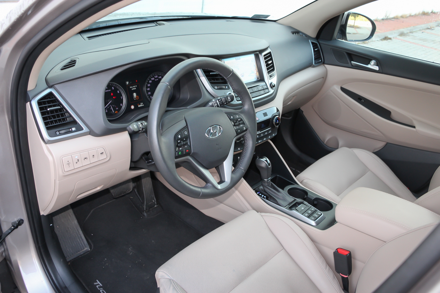 A beltér még mindig nincs Volkswagen szinten, de a Tucson ára jóval barátságosabb is a németekénél. Ízlésesek a színek, a formák sem rosszak, de a műanyagok lehetnének puhák, vagy kerülhetne kárpit a helyükre