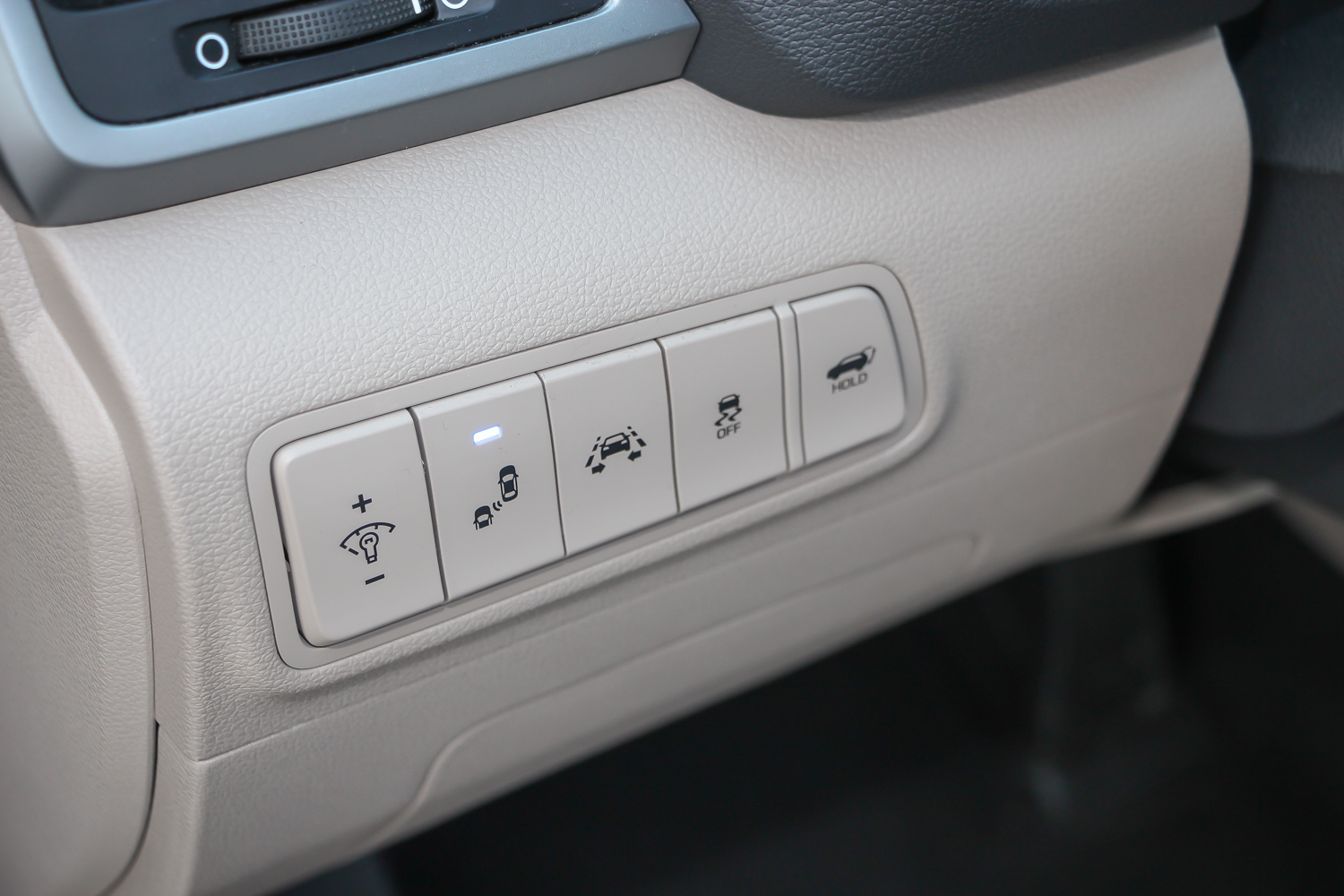 Milyen bent? Katonás, egyszerű mértani formákkal operáltak a Tucson belterének tervezői. Nincs akkora petárdadurrogtatás, mint amit a németek manapság szoktak csinálni, de korrekt az iparosmunka. A kapcsolók hamar megszokhatóak, ahogy a fedélzeti számítógép kezelőfelülete is. A szemnek kellemesek az ívek és a szögletek váltakozásai, illetve a színek összepárosítása. Végre elköszönhetünk a régi, kocka Mazda 626-ost idéző barna plasztikoktól, helyettük fekete és bézs minden felület. A műszerfal fehér, a gombok és a kapcsolók viszont kék háttérvilágítást kaptak. Nekem nem a kedvencem, van akinek viszont ez így nagyon bejön. Lehúzni kár ezért a Hyundait, mert a széles tartományban állítható fényerőnek hála egyáltalán nem zavaróak a fények. Impozáns viszont a jobban felszerelt változatokhoz járó LED-es beltéri világítás.