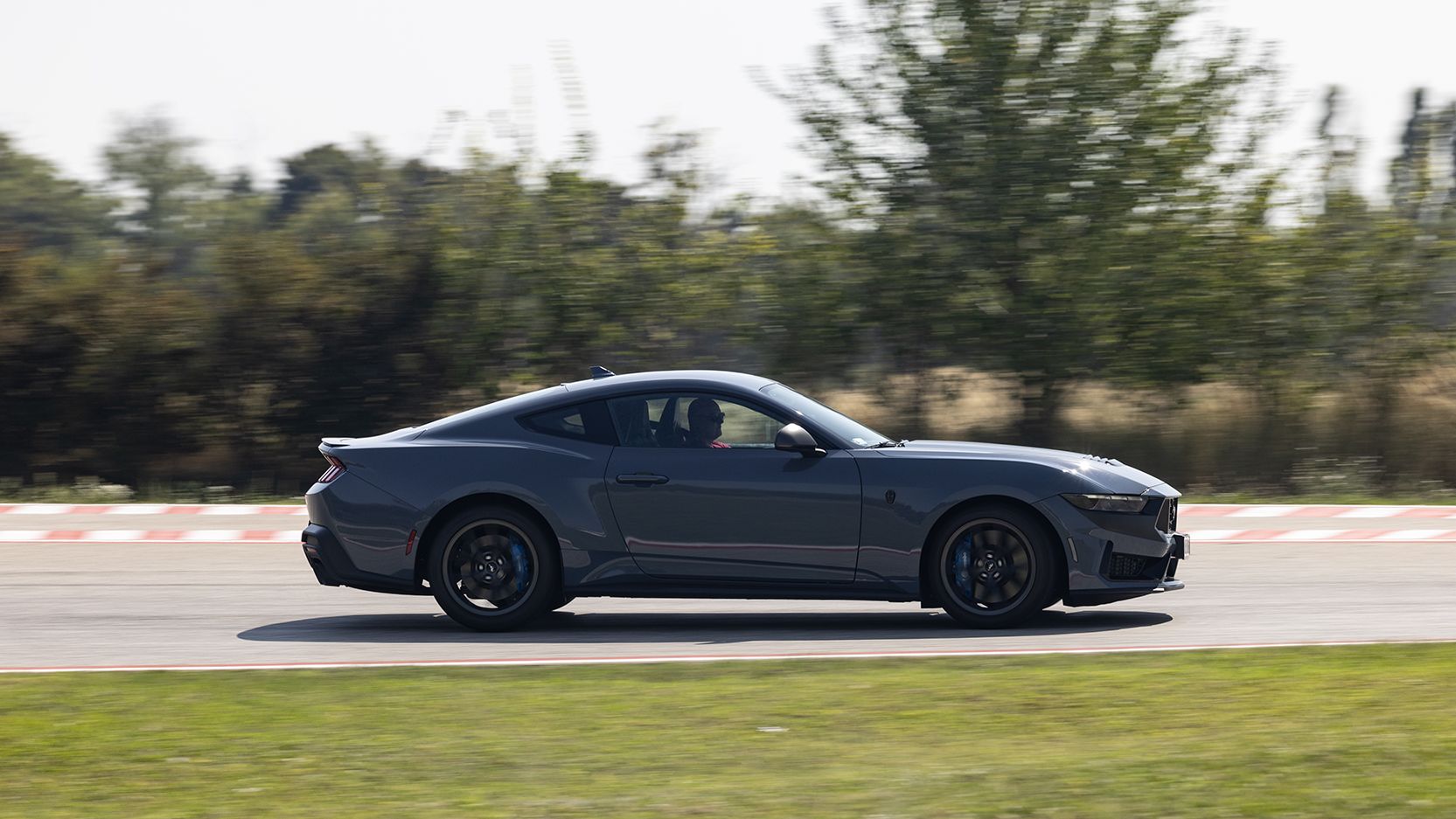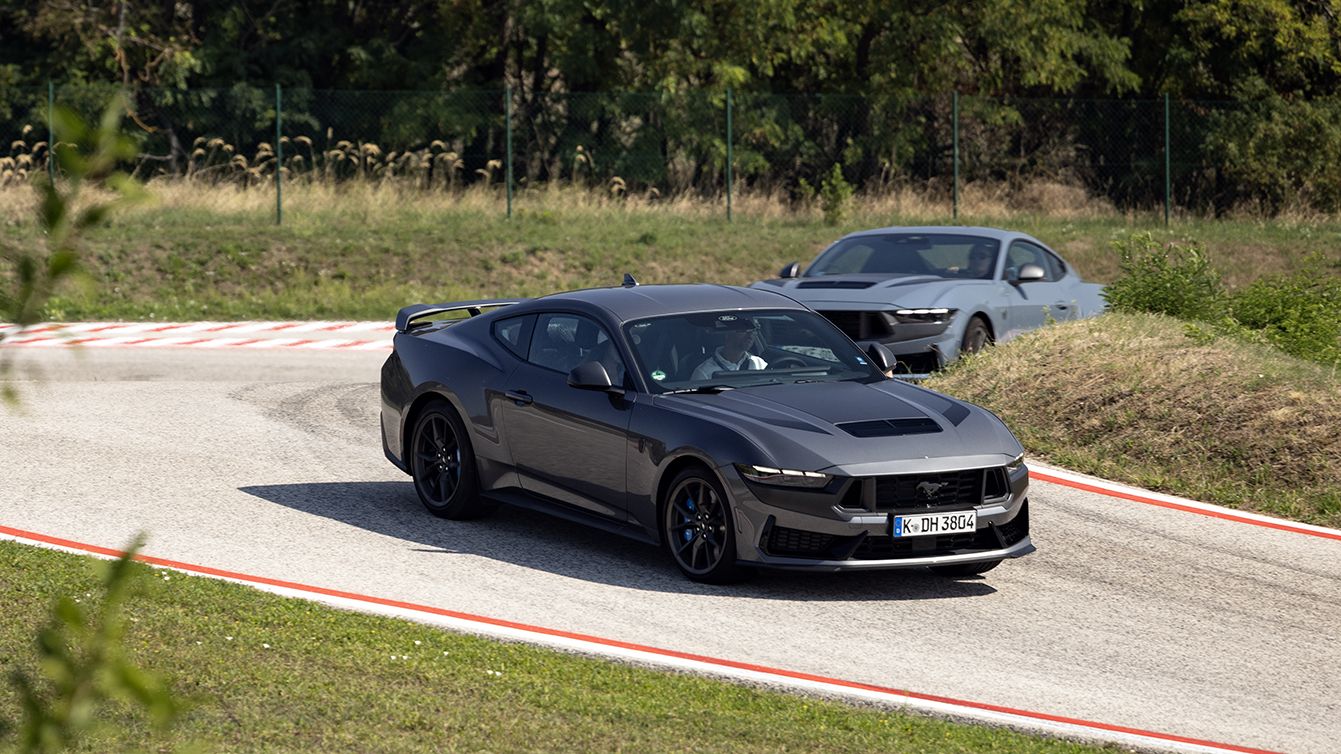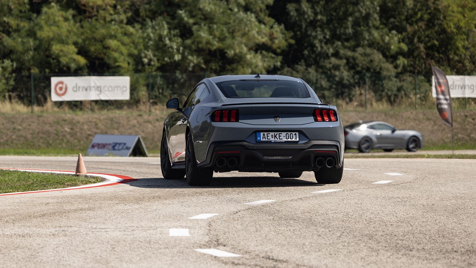 Szerencsére a Ford még kitart a jó kis Coyote motor mellett. Vagyis bocsánat, ezt nem illik kicsinek nevezni, hiszen ötliteres hengerűrtartalommal és a GT-ben 446 lóerővel, a Dark Horse változatban kicsit többel rendelkezik. Az 540 Nm forgatónyomaték azonos és mindenképp a hátsó kerekekre szabadul hatfokozatú manuális, vagy 10 fokozatú automatikus váltó segítségével. A Dark Horse pedig nem csak a lóerők számában különbözik, hiszen egyedi a blokkja, és az 5,2 literes motorból örökölt alkatrészeket, így 453 lóerőt tud. Közúton nem feltétlenül fogod érezni a különbséget, de mi a Drivingcamp lezárt pályáján azért megtapasztaltuk, hogy számít a különbség.