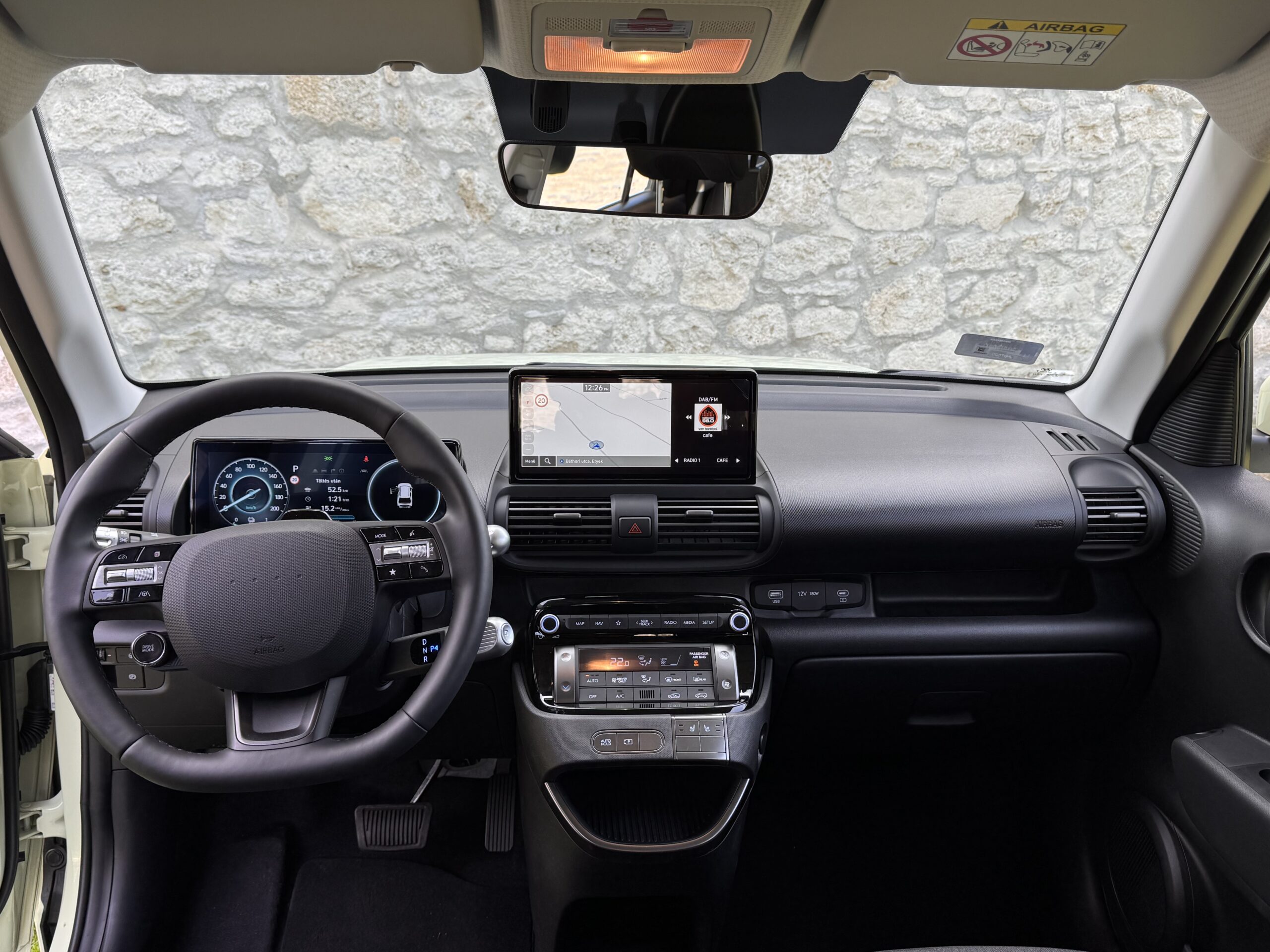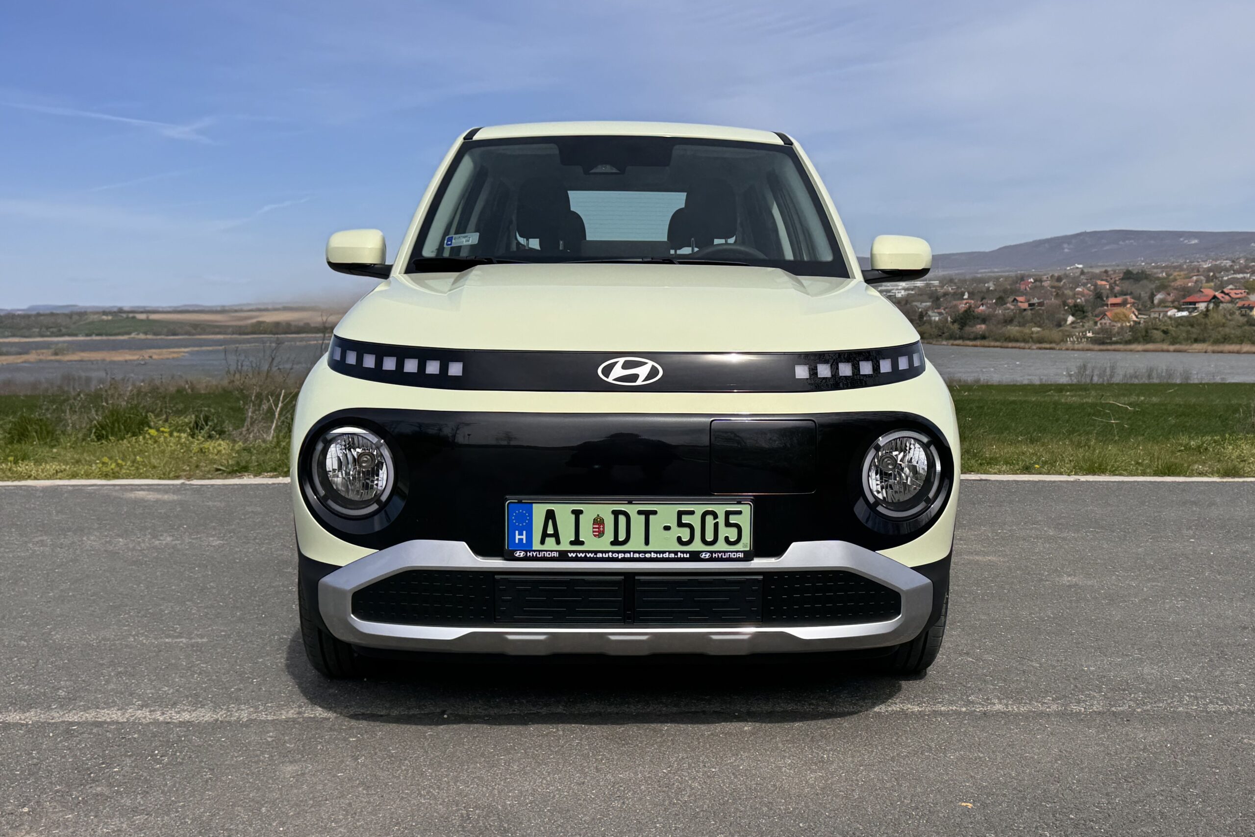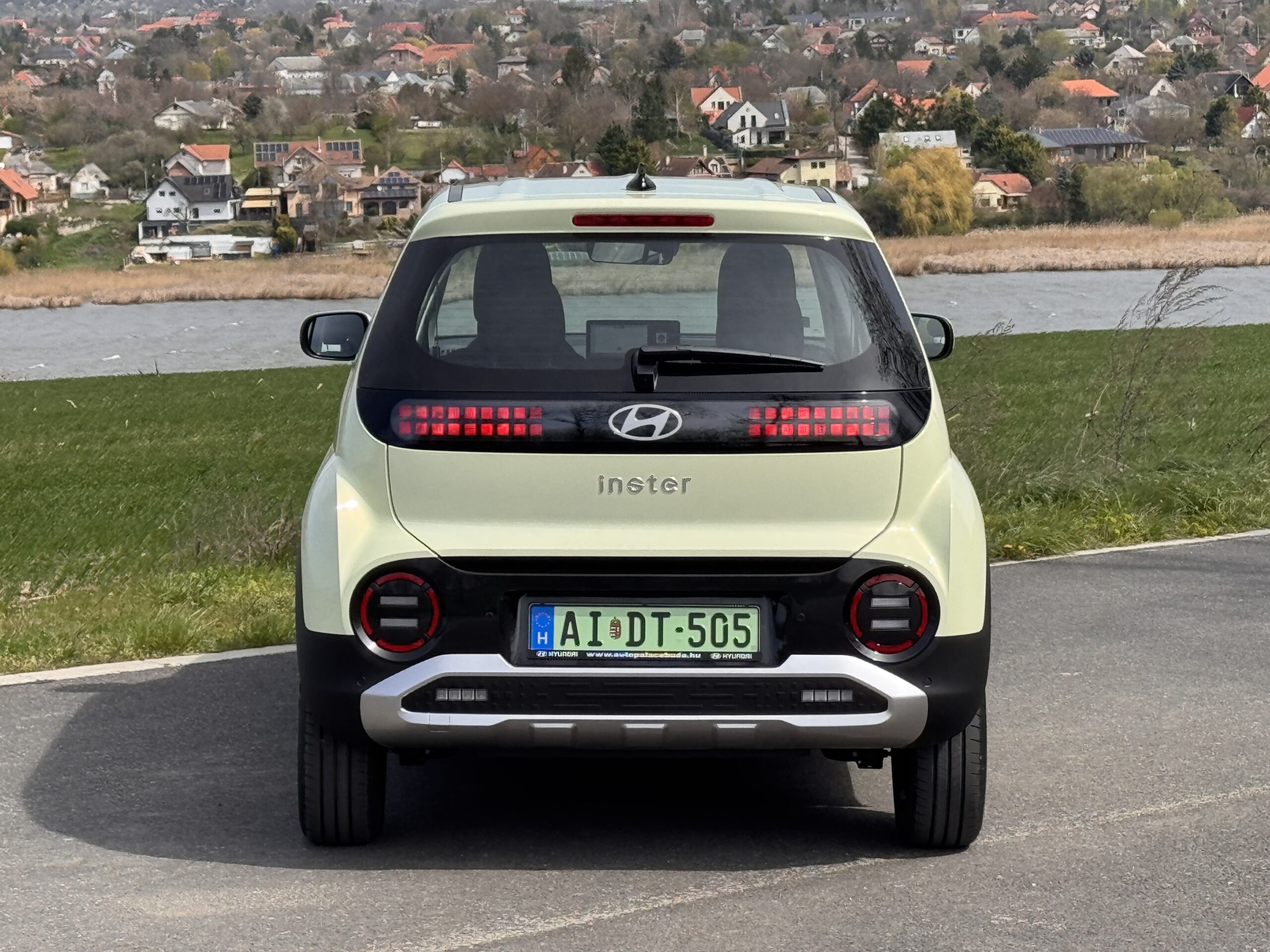 Külső méretei a hagyományos miniautók (A-szegmens) és a nagyobb városi kisautók (B-szegmens) közé pozícionálják a Hyundai szerint, de ezt ti is eldönthetitek a méretadatok tudatában. Ezek pedig: 3,8 méteres hossz, körülbelül 1,6 méteres szélesség és kerekítve szintén 1,6 méteres magasság. Szóval keskeny és magas, valamint nem túl hosszú, tehát ideális a városi manőverezéshez, illetve nem kevésbé a parkoláshoz. Tényleg játszi könnyedséggel tudod betenni az apró helyekre is, hiszen könnyen látod, sőt mi több érzed a sarkait. Ráadásul a próba során országúton és autópályán is vezettük, és sehol nem vérzett el, pedig a nagyon erős szél bele-belekapott a magas építésmód miatt, ám így is gyorsan elérte a 130-as határt, emellett teljesen stabil maradt. Sport módba kapcsolva pedig olyan gyorsulást produkált, hogy csak pislogtunk. Legalábbis az apró termete miatt dupla olyan gyorsnak érezni, mint valójában.