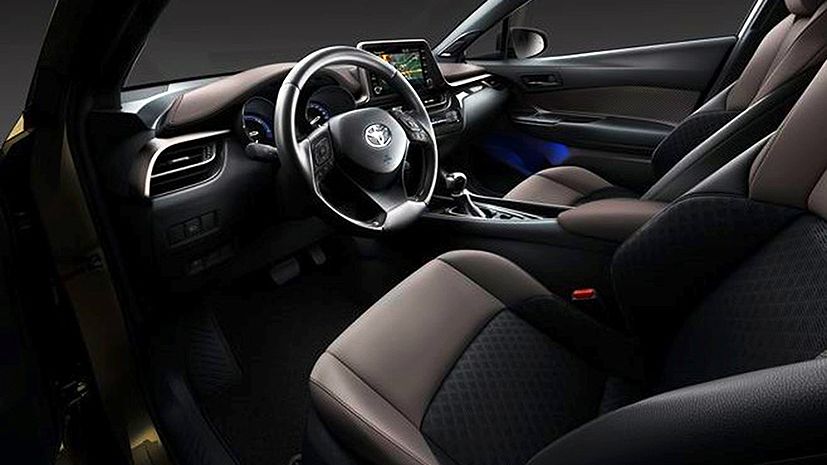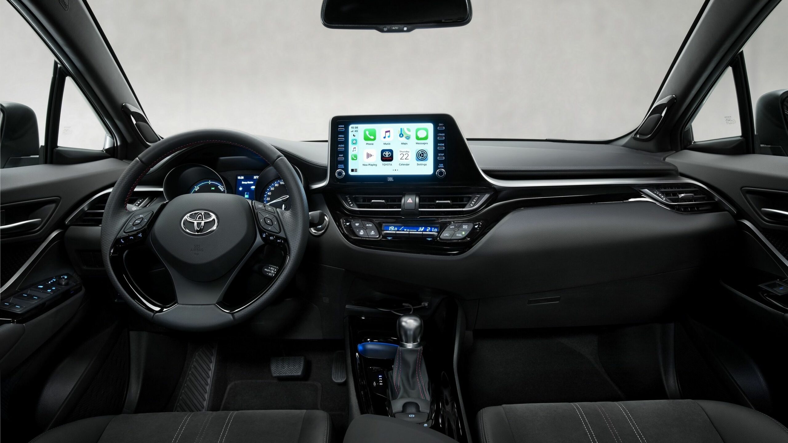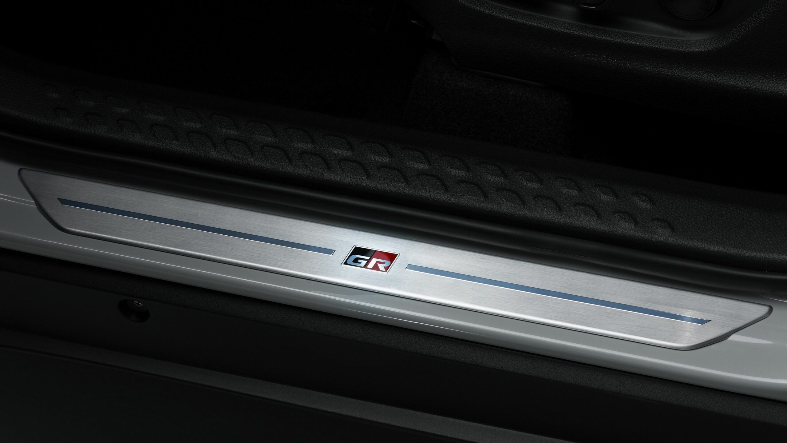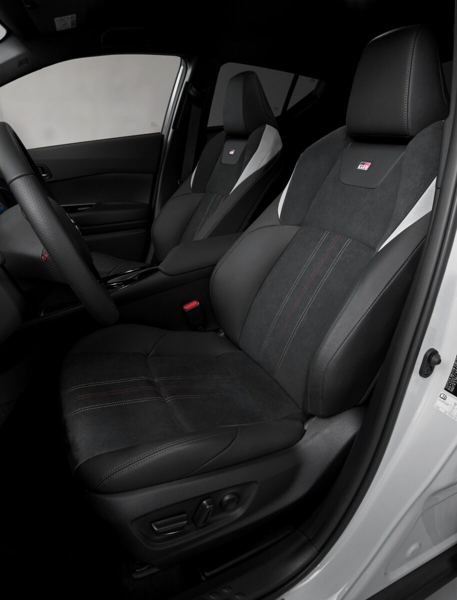 Belül a GR Sport újfajta ezüstszürke betéteket, Alcantara-bőr vagy szövetkárpitot kap, mindkettő feltűnő, GR-ihletésű vörös és szürke varrással készül. Szintén egyedi a perforált bőrborítású kormány és váltókar, vagyis az automata előválasztójának vörös varrása is. A küszöbökre GR Sport feliratos betét kerül, de a GR indítógomb és a TFT kijelzőn futó GR indítási animáció is emlékezetet, hogy miben is ülünk. A GR Sport a sportosítás mellett gazdag felszereltséget is ad, sok más mellett a sötétített üvegezés, az okoskulcs, a LED fényszóró és az elektromosan behajtható külső visszapillantópár is megtalálható, a természetesen elektronikus és automatikus (álló benzinmotornál is járó) légkondicionáló mellett. Felárárért kérhető az elektromosan állítható és fűthető első üléspár, illetve a csúcsminőségű JBL audiorendszer is.