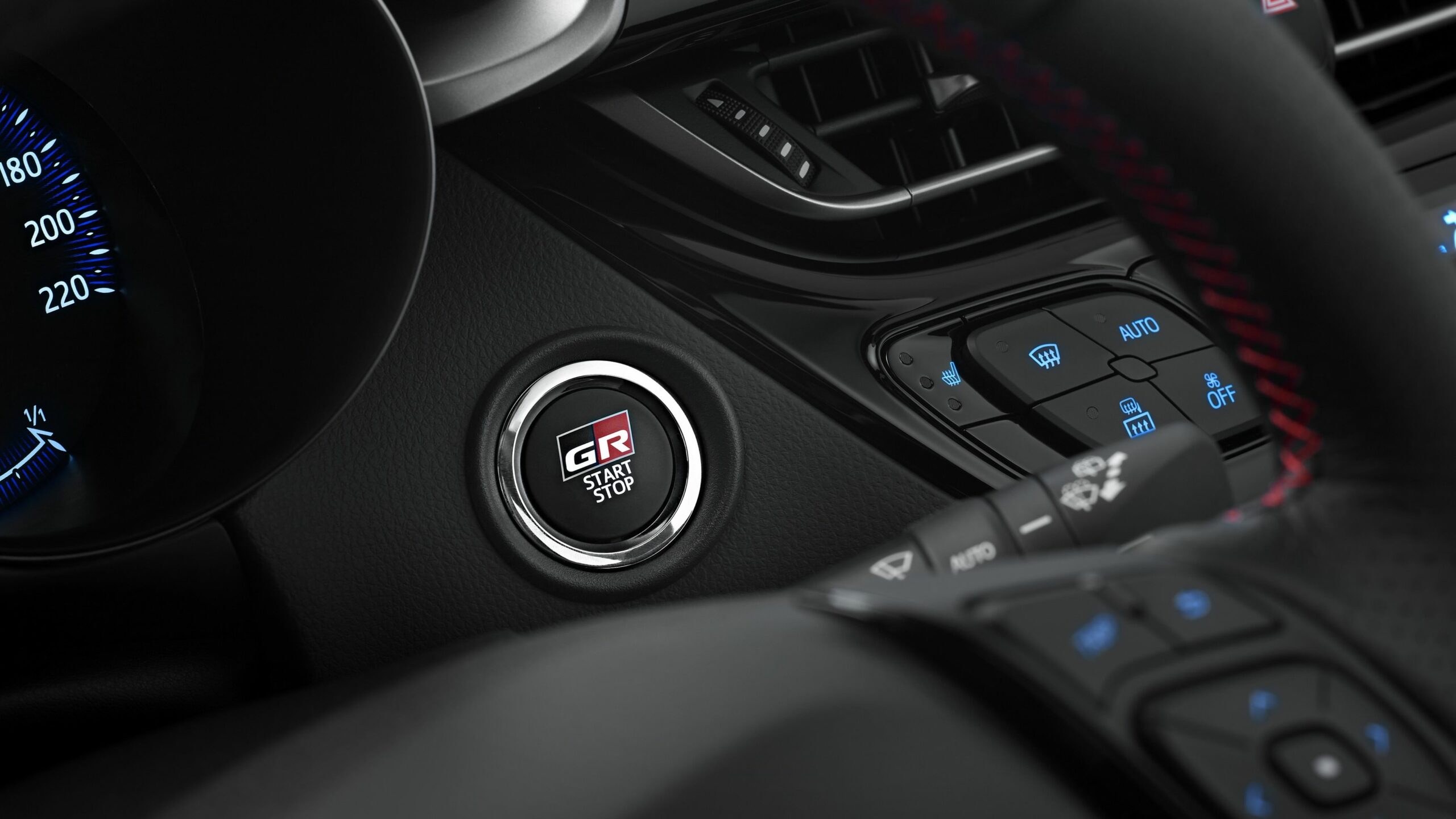 A GR Sport jelzés az indítógombon, az üléseken, de még az indítási animáción is megjelenik