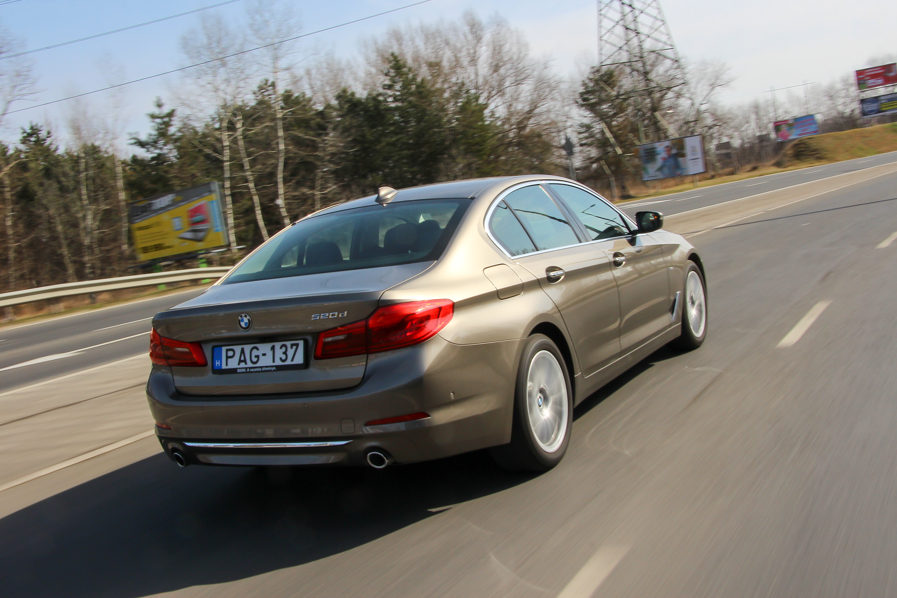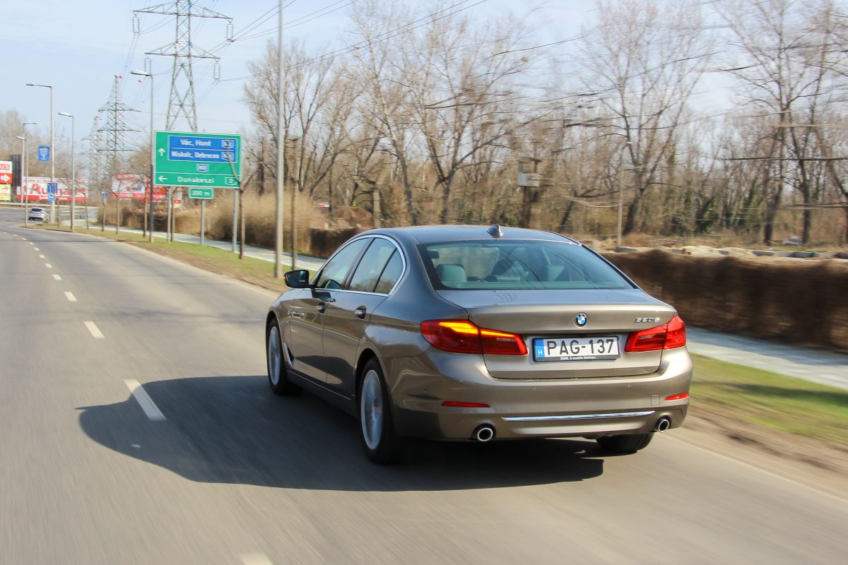 Az úton is jó. Bár a legtöbb embert valóban a kijelzős okoskulcsról indítható távirányítós parkolással nyűgözi le az 5-ös, utasait menetkomfortjával és menetjellemzőivel is. Már az 520d alapverzió is. A soros négyhengeres, 2,0 literes dízel régi ismerős a BMW palettájáról. Ám itt olyan szintű hangszigeteléssel látták el, hogy minden eddiginél jobb arcát mutatja. Járása négyhengeres dízelhez képest kulturált, hidegindítását egy speciális, a motorhőt akár 36 órán át őrző betét segíti,illetve teszi finomabbá. Stop-startja is egész gyors, ugyanis dugóban az előttünk álló autó elé tekint. A 20d motor 190 lóereje és 400 Nm nyomatéka valójában untig elegendő, pláne, hogy utóbbi már 1750/perctől megvan, de a kettős megfúvású, változó geometriájú turbós dízel alacsonyabb fordulatszámon sem halott. A nyolcfokozatú automata kiválóan gazdálkodik az erővel, finoman és gyorsan kapcsol. Hogy hol, az beállítástól függő. Comfort, Eco Pro és Sport módok közül válogathatunk, illetve mindegyikből készíthetünk egyedi konfigurációt. Sportban valóban egészen sportos az 5-ös.