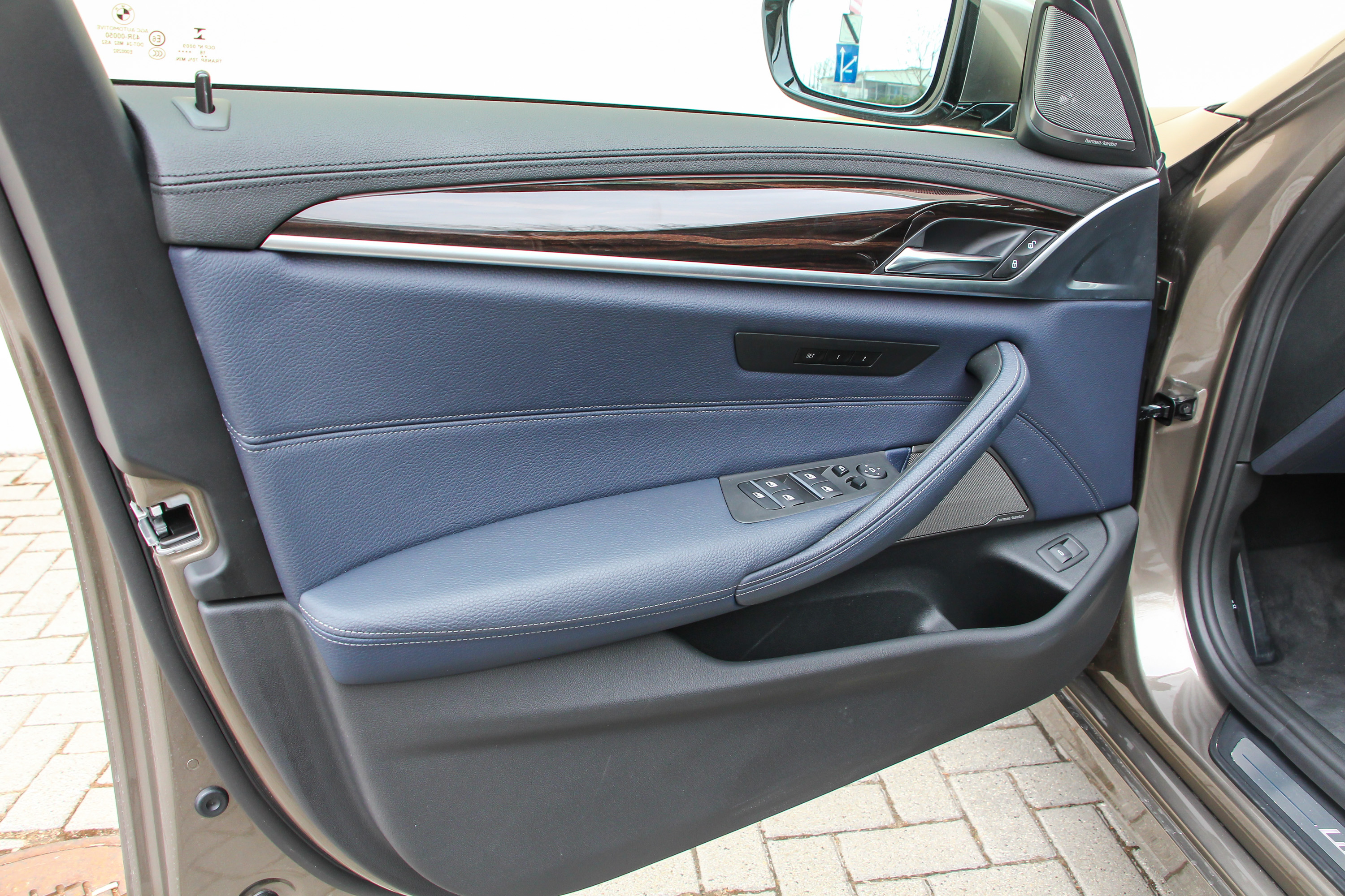Zongoralakk és változó színvilág. A beltér egyik különlegessége a hangulatfények menüből hangolhatósága. Igaz, itt nincs annyi árnyalatunk, mint például a konkurens E-osztálynál, de itt is kellőképpen ízlésünkre, aktuális hangulatunkra szabhatjuk az utastér hangulatát. Már amennyire a rendelés után lehetséges. A Luxury Line tesztautóban például zavaróan, az 5-ös rangjához kissé méltatlanul sok volt a fekete zongoralakk, jutott persze (kamu) fabetét is az éjkék varrású Dakota bőr mellé, viszont a berendezés egy picit furcsa, a 22 millió forintos tesztautó szemre nem annyira vonzó, mint például egy hasonló kategóriájú Volvo S90. Pedig az 5-ös valójában sokkalta összeszedettebb és kényelmesebb autó. Nem csak üléseivel, sokkalta élménydúsabb futóművével és vezethetőségével együtt is.