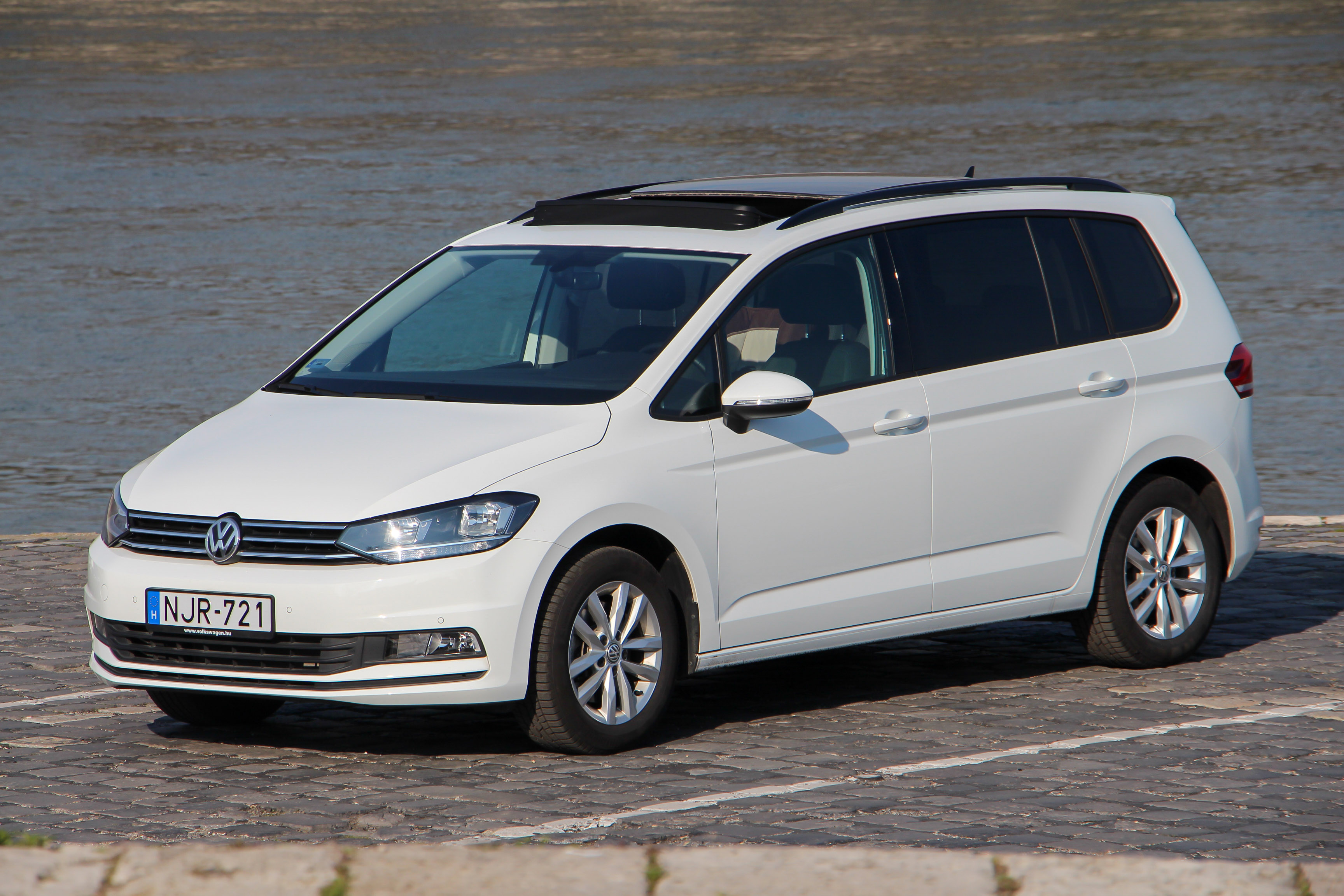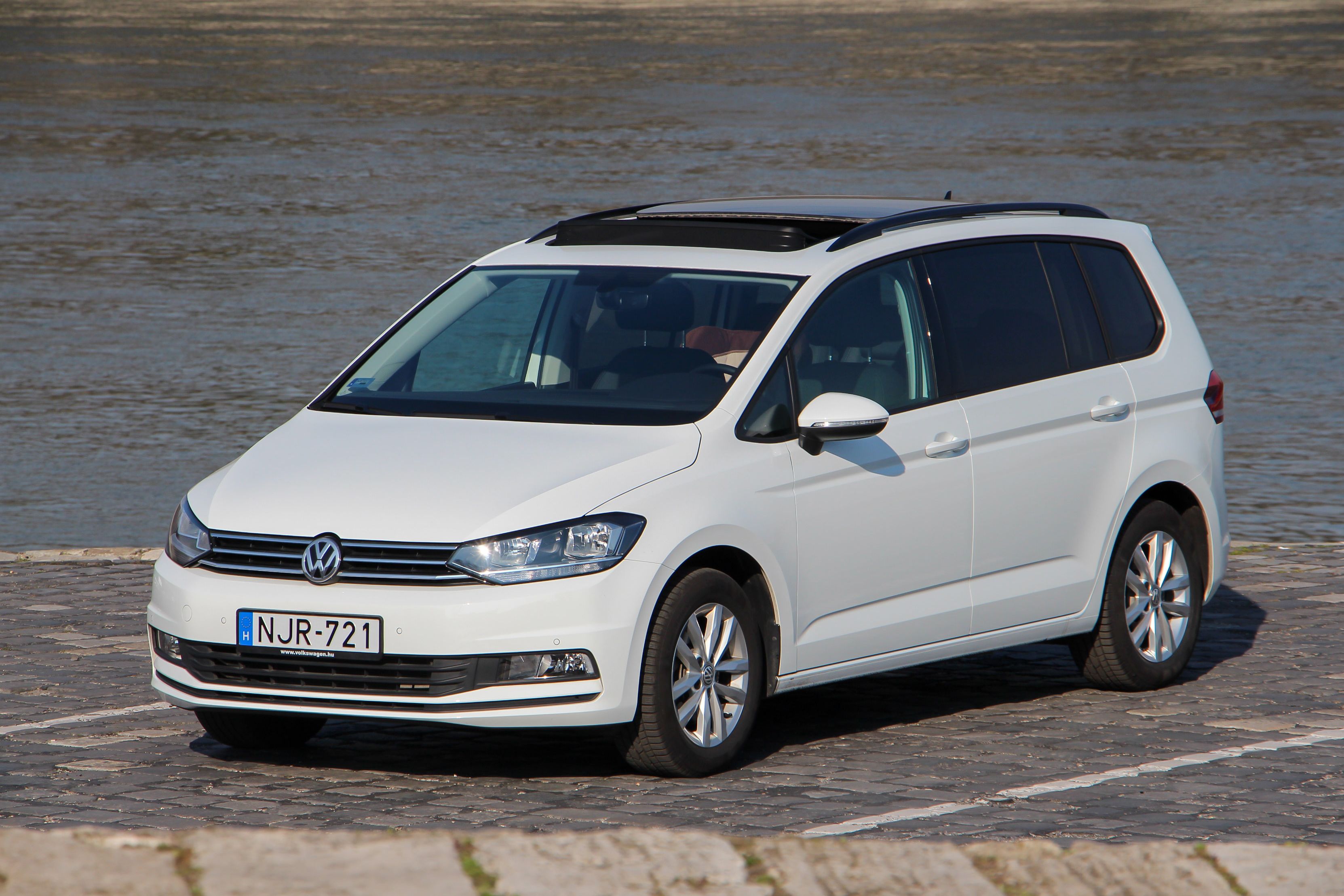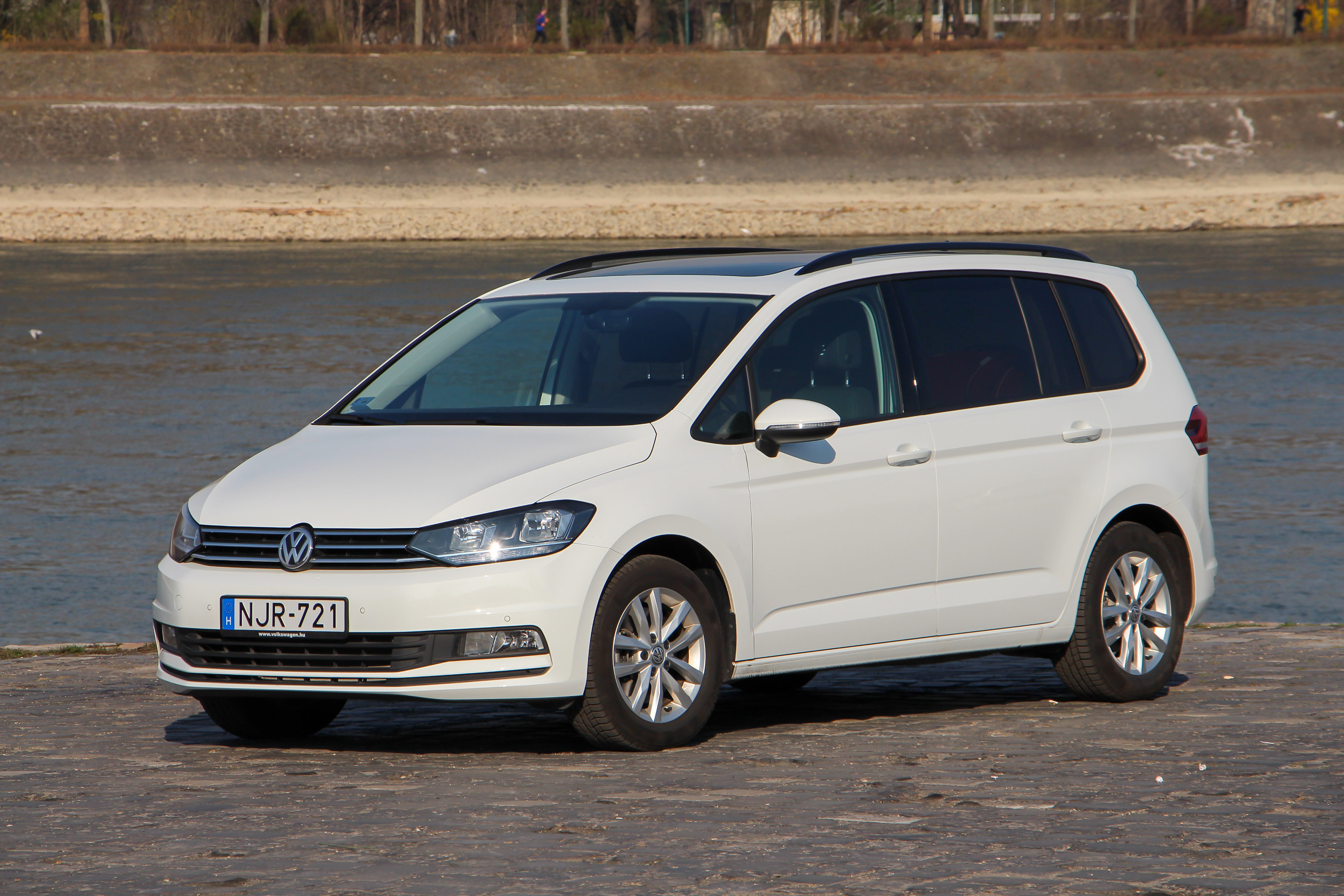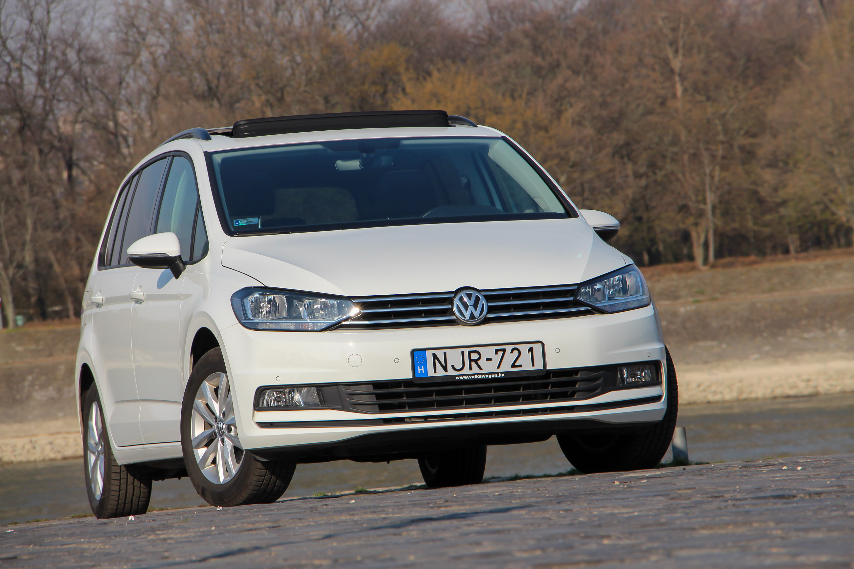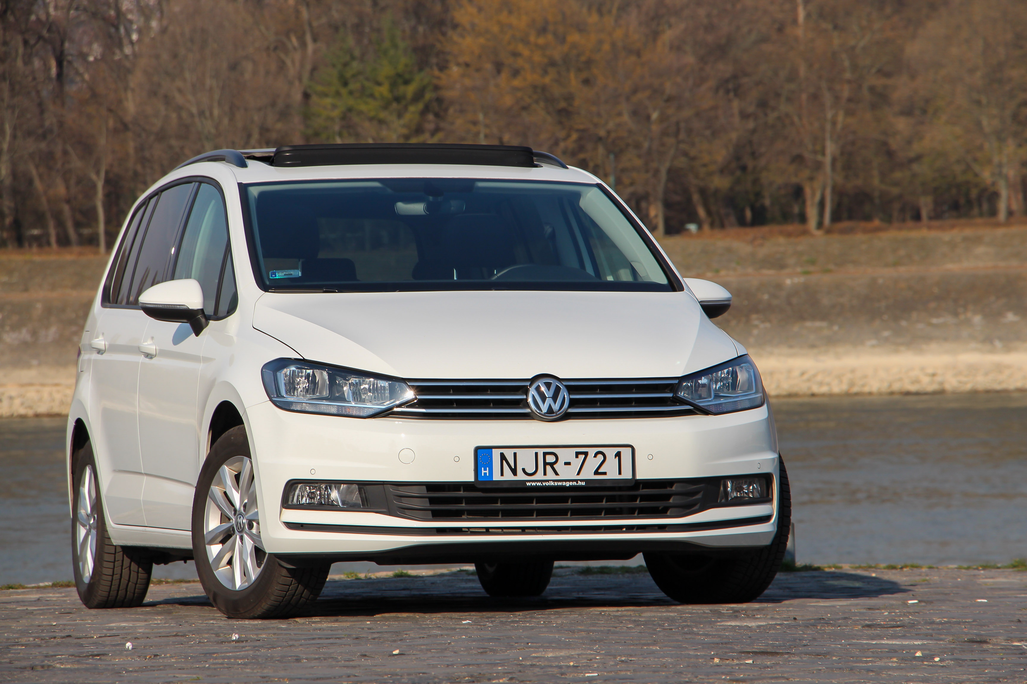 Élre vasalt - immár a Touran is, felvette a mai Volksagen-dizájnt. Az óriási nyitható panorámatető jó dolog, de a Touranhoz hasonlóan nem olcsó