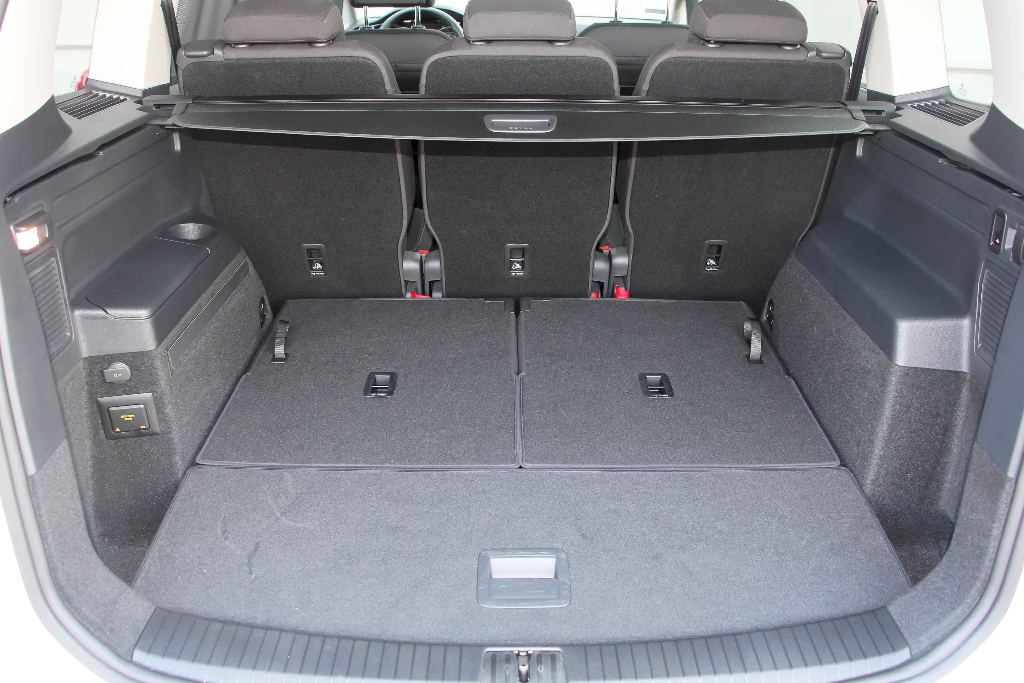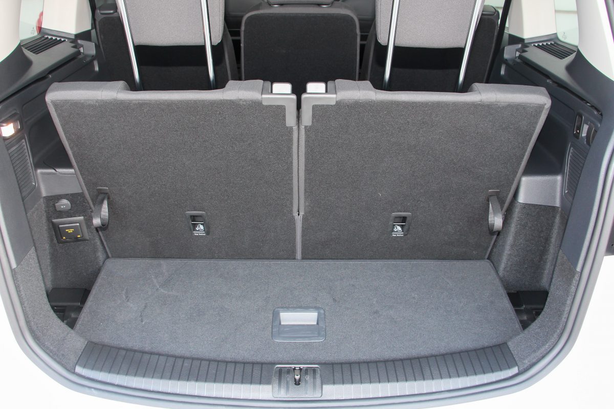 A Mazda 5-öm csomagtartója is 1 méter hosszú, előre is lehet tolni a hátsó két ülést, és akkor az is lesz 1,2 méter. A kerékdobok több helyet elvesznek ugyan, de 1,025 méter belül, ez pedig 1,05. A két pótülést kihajtva a Mazdánál még nagyobb hely is marad egy kicsivel. A Touran 743 literes, hivatalosan, a Mazda5 426 literes. Ezekből az következne, hogy a VW az övvonalig 60-70%-kal magasabb csomagtartóval rendelkezik, de a képeket elnézve nem.