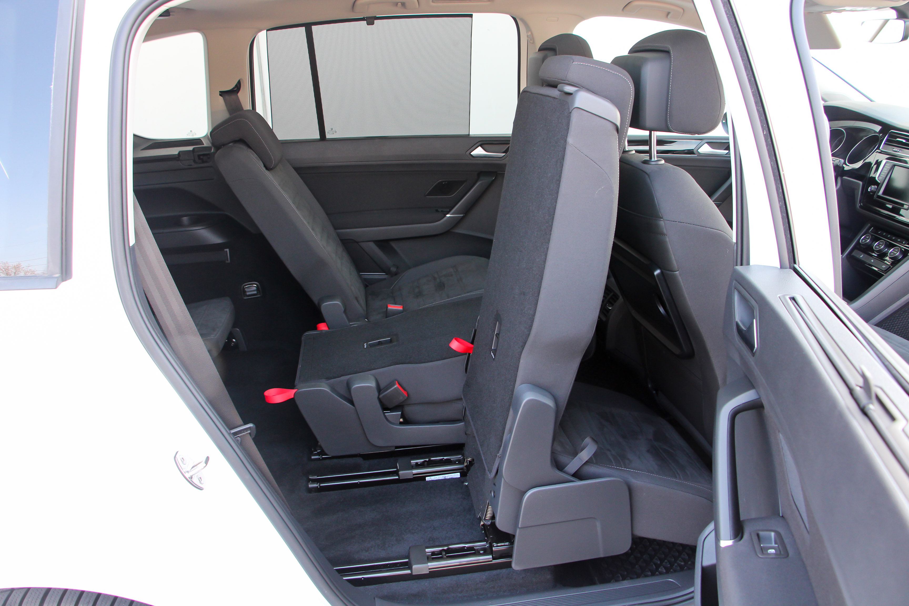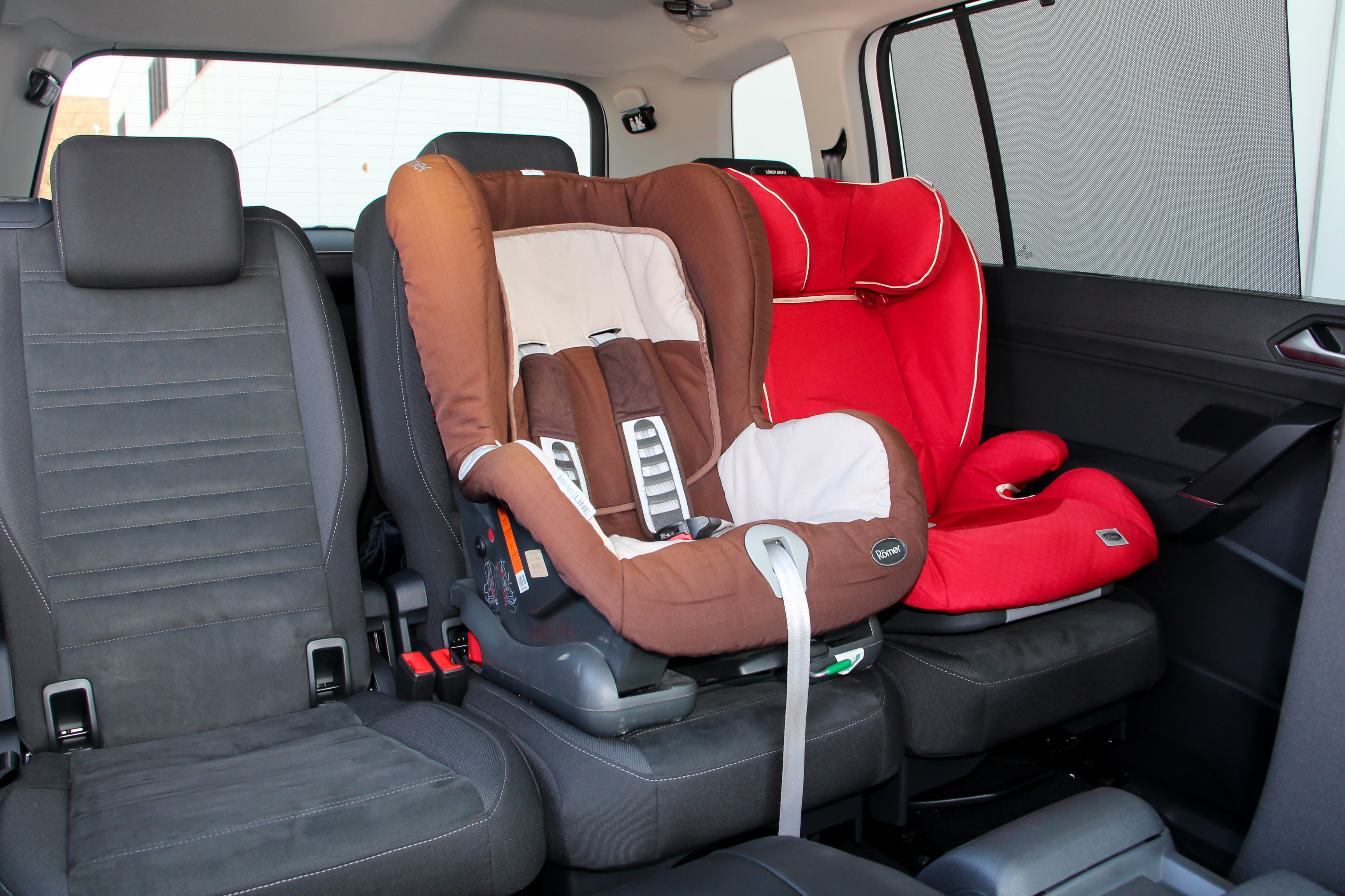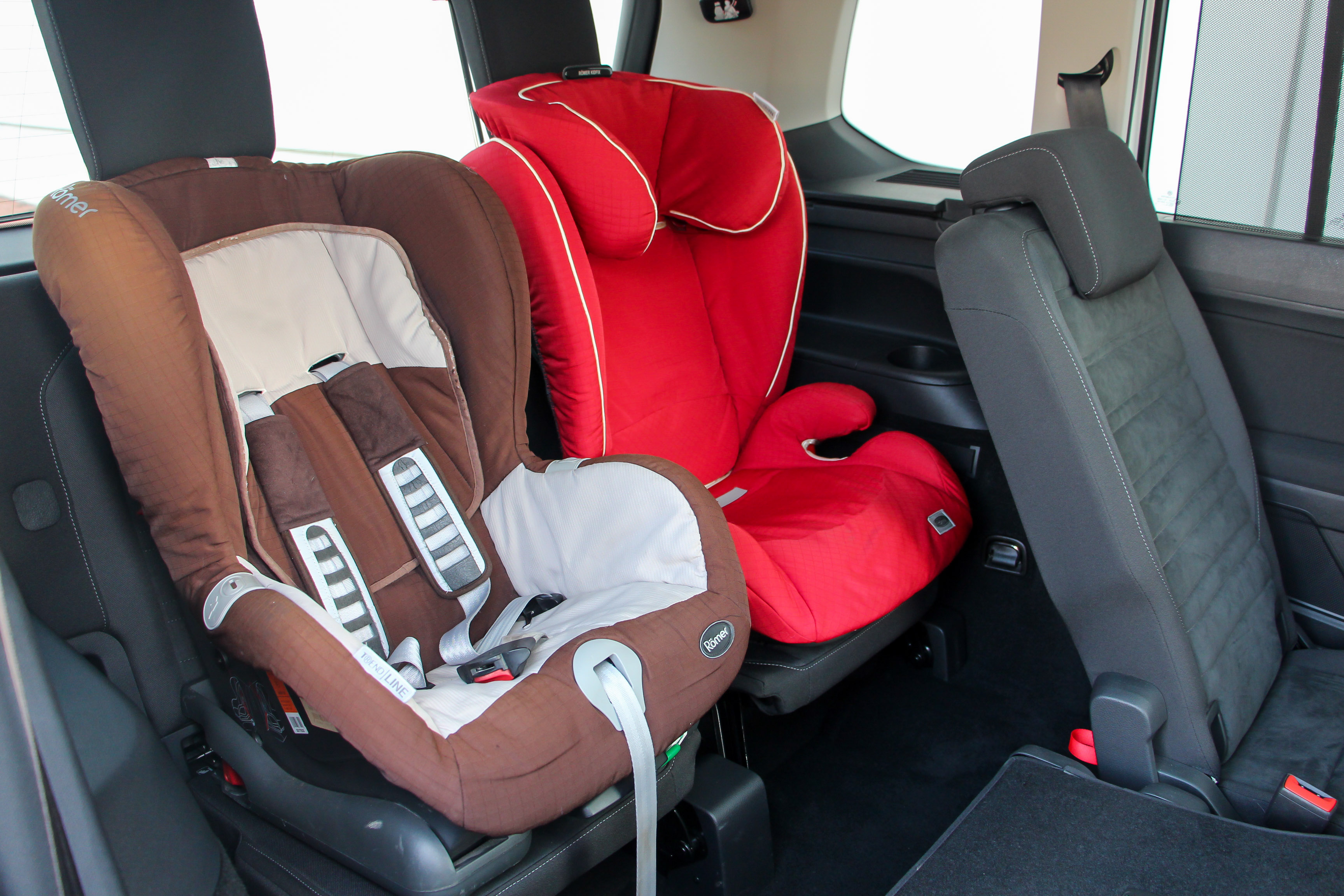 Még a harmadik sorba is berakhatunk két isofixes gyerekülést, a második sorba pedig úgy is fér középre, ha mellette is van. A Touran valóban vígan elnyelhet 5 gyerekülést