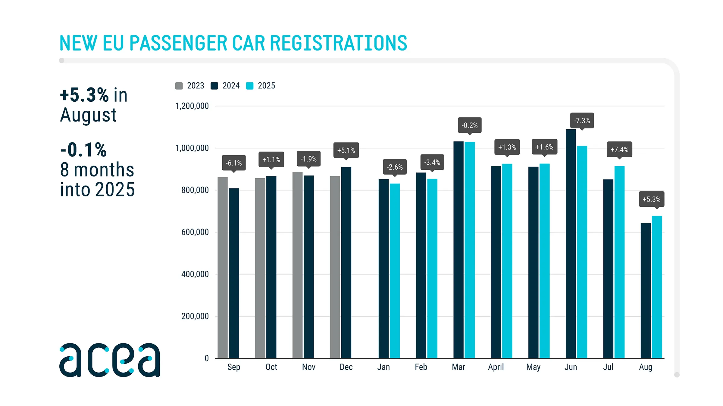 Az ACEA adatsora szerint stagnál az EU újautó-piaca, 0,1 százalékos csökkenéssel az előző év azonos időszakához képest. Sokkal fontosabb üzenetet hordoz azonban a hajtáslánc-típusok szerinti csoportosítás. 2025 augusztusáig a tisztán elektromos autók az EU piaci részesedésének 15,8%-át teszik ki 1 132 603 eladással, ami növekedés a 2024 augusztusi 12,6 százalékos értékhez képest. Fontos azonban megjegyezni, hogy a villanyautók 62 százalékát 3 országban regisztrálták, mindhárom növekedést mutatott: ezek Németország (+39,2%), Belgium (+14,4%) és Hollandia (+5,1%). Ezzel szemben Franciaországban például 2 százalékkal csökkentek a villanyautó-eladások. Mindemellett 2025 első 8 hónapjában 2 485 069 hibridet helyeztek forgalomba, ezzel 34,7 százalékát teszik ki a piacnak, így idén is ez a legnépszerűbb hajtáslánc-típus az EU-ban. A tavalyi évhez képest Franciaországban (+30,5%), Spanyolországban (+29,3%), Németországban (+10,1%) és Olaszországban (+9,4%) nőtt a legnagyobb mértékben a hibrid eladások száma.