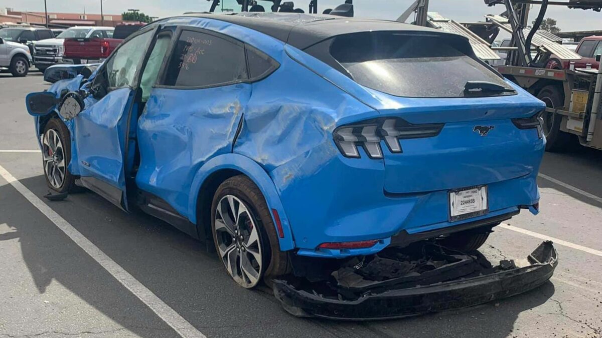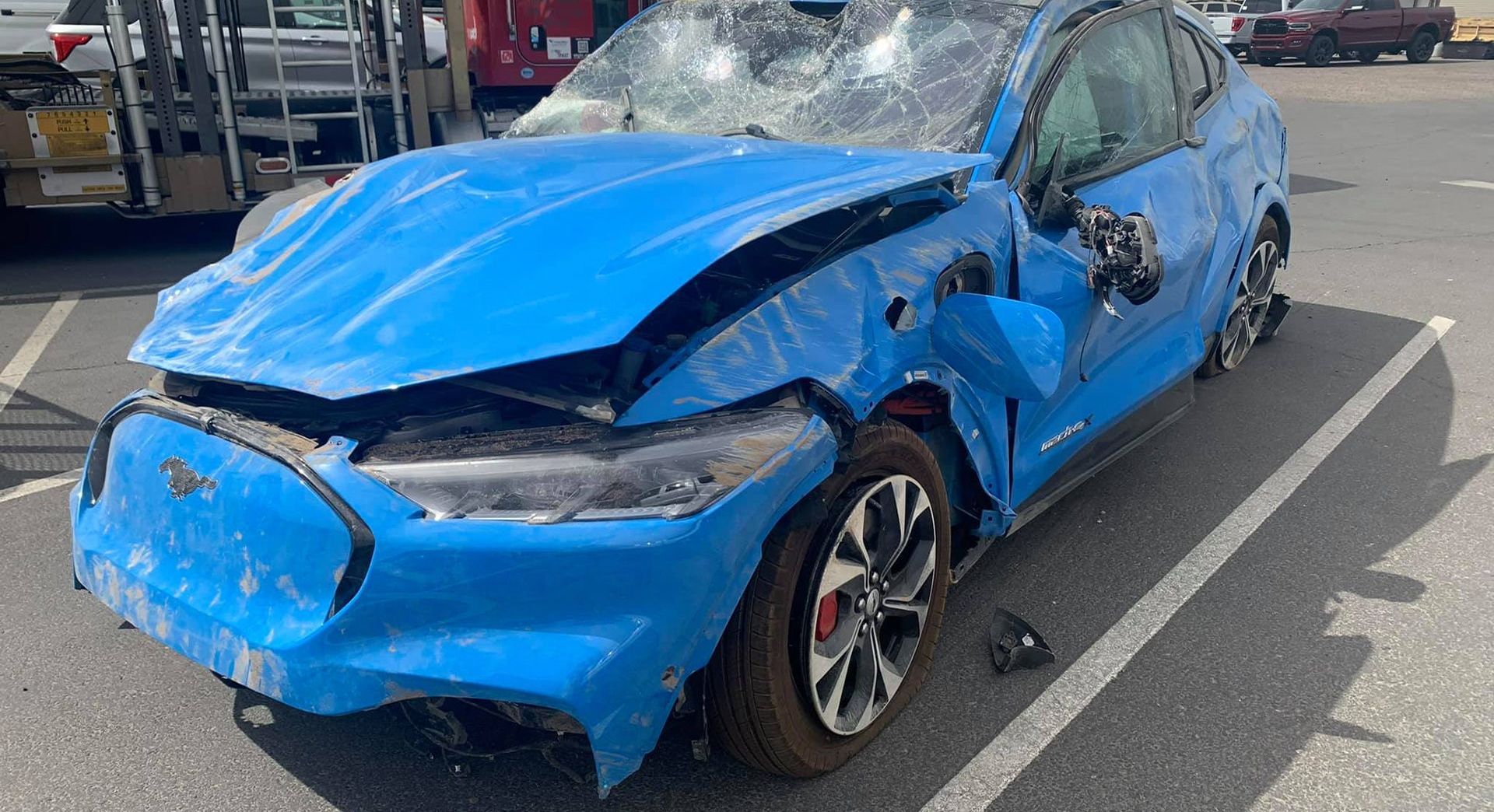 Minden oldalról összetört a Mach-E, szóval biztosan nagy balesetbe keveredett (fotó: Instagram/the_xcalibur)
