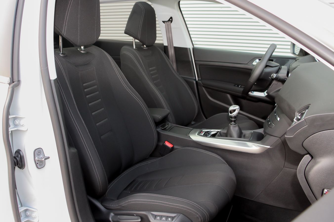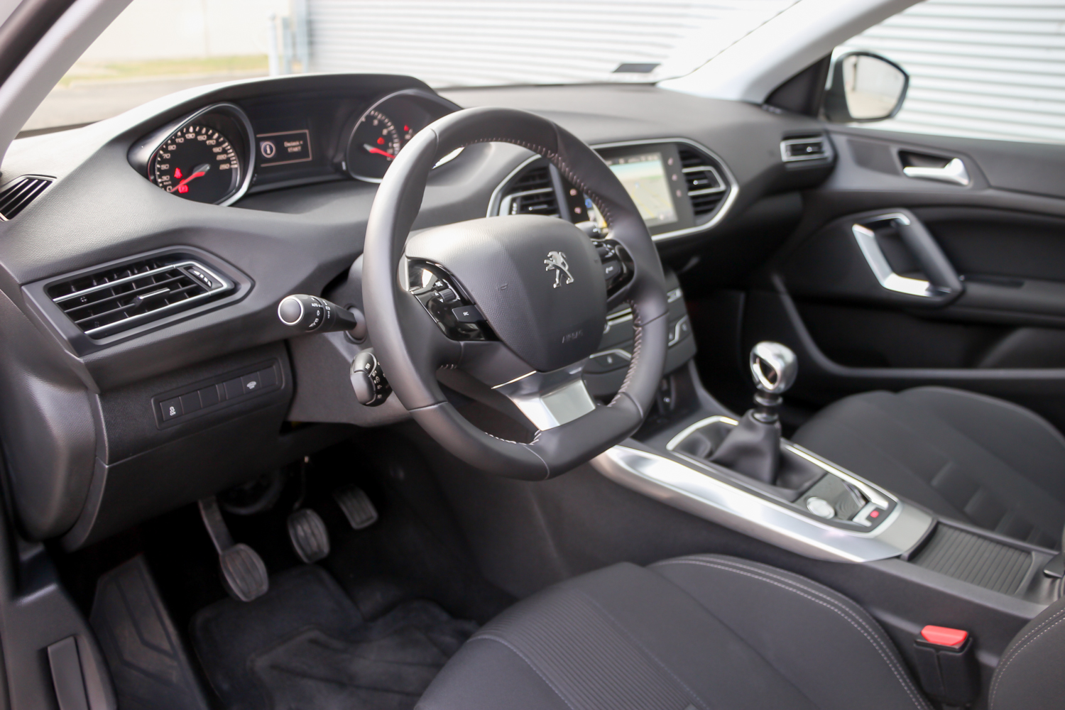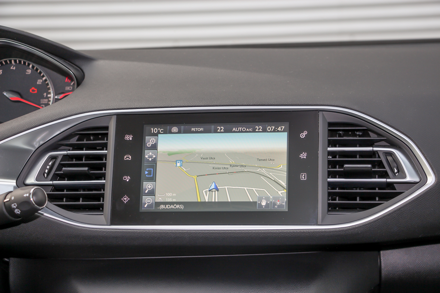 Elöl otthonos, minden kézre esik, hely van bőven. Az elektromos gerinctámaszos masszázsülés felesleges tétel az extralistán, mert a masszázs gyenge, és az alapülés is teljesen jó. Ad némi oldaltartást, ülőfelülete megfelelően nagy, persze a széle trükkösen le van kerekítve. Belül mindent a kicsi, vaskos kormánykerék határoz meg. Jó a fogása és pont jó helyen van, persze eltart egy ideig megszokni, de nem nehéz összelőni úgy a műszeregységgel, hogy jó helyen álljon az egyik a másik fölött. Az órák magasan vannak és közel is, ez is igényel megszokást, de alapvetően nagyon jó és ötletes megoldás. A korábbi Peugeot-kba lehetett rendelni head-up display-t, de most ez a trükkös I-Cockpit műszer kiváltja azt. Pont olyan magasságban van, hogy a lehető legkisebb fejmozgással váltsunk nézetet az út és közötte. Kisebb a távolság, kisebbet kell fókuszálni, kevésbé dolgoztatja meg a vezető szemét, ezért biztonságosabb a hagyományos műszerfalaknál.