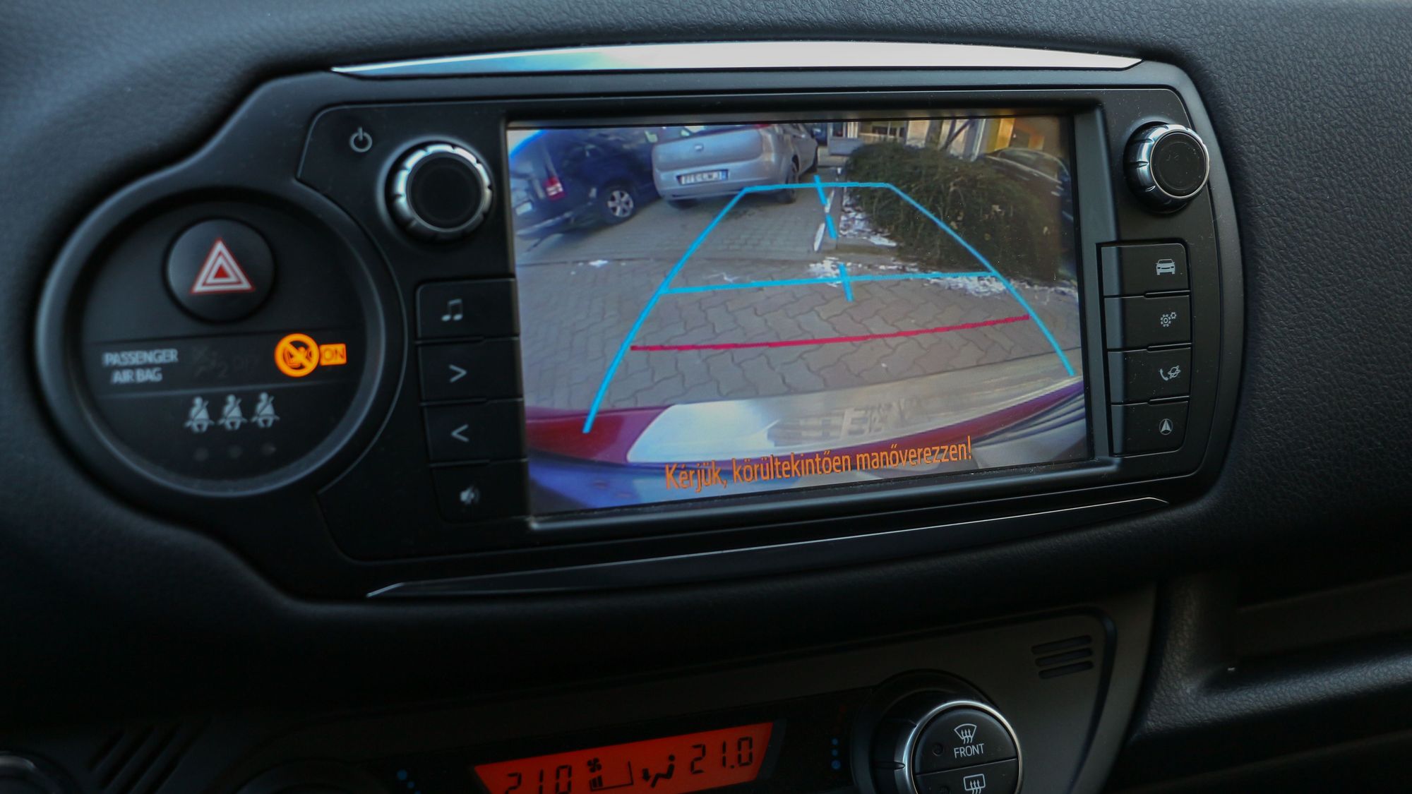 Viszont amikor használva volt ez a Yaris, akkor bizony használva volt, s nem kímélve. Ez megfelelő kenőanyaggal a motornak nem probléma, az ma is épp olyan élénken és szívesen pörögve dolgozik, mint tette újkorában. Viszont tavaly nyáron nem csak műszakiztatni kellett a Yarist, hanem ahhoz új toronycsapágyakat és első-hátsó lengéscsillapítókat is kapott. Ehhez nyilván hozzájárultak a budapesti utak és a magas felszereltség 195/50 R16-os, azaz viszonylag peres abroncsai is. Az élet bizony a Bi-tone felniken is látszik, az elsők semmiképp sem mondhatók karcmentesnek, s hiába került az alapáras tolatókamera mellé utólagos első-hátsó, kissé nyers hangú tolatóradar, meghúzás a hátsó lökhárító szélére is jutott, igaz ott már pont nem láthatta a szenzor az akadályt.