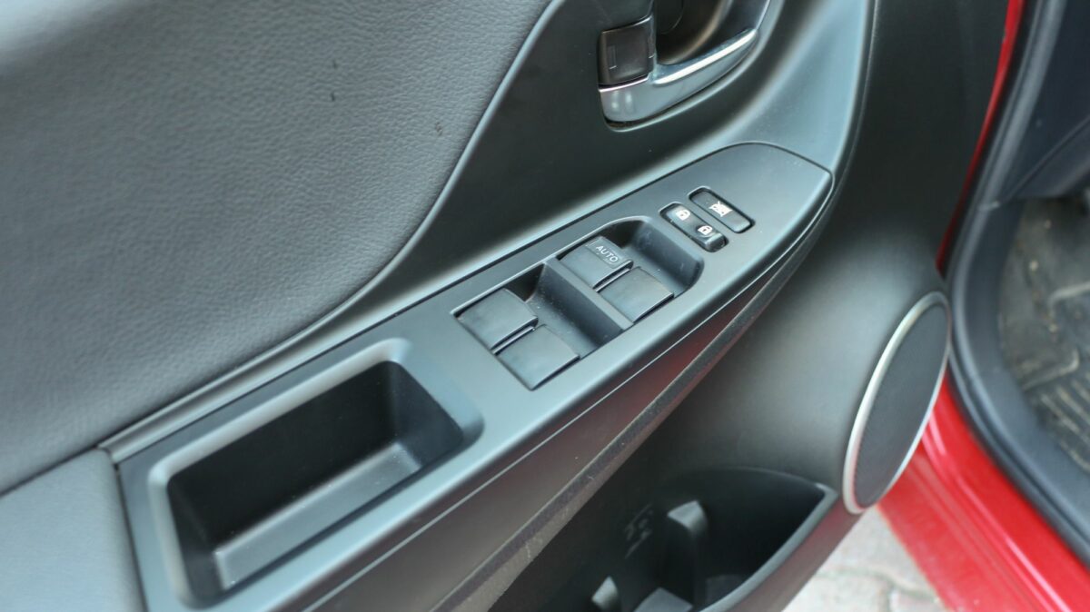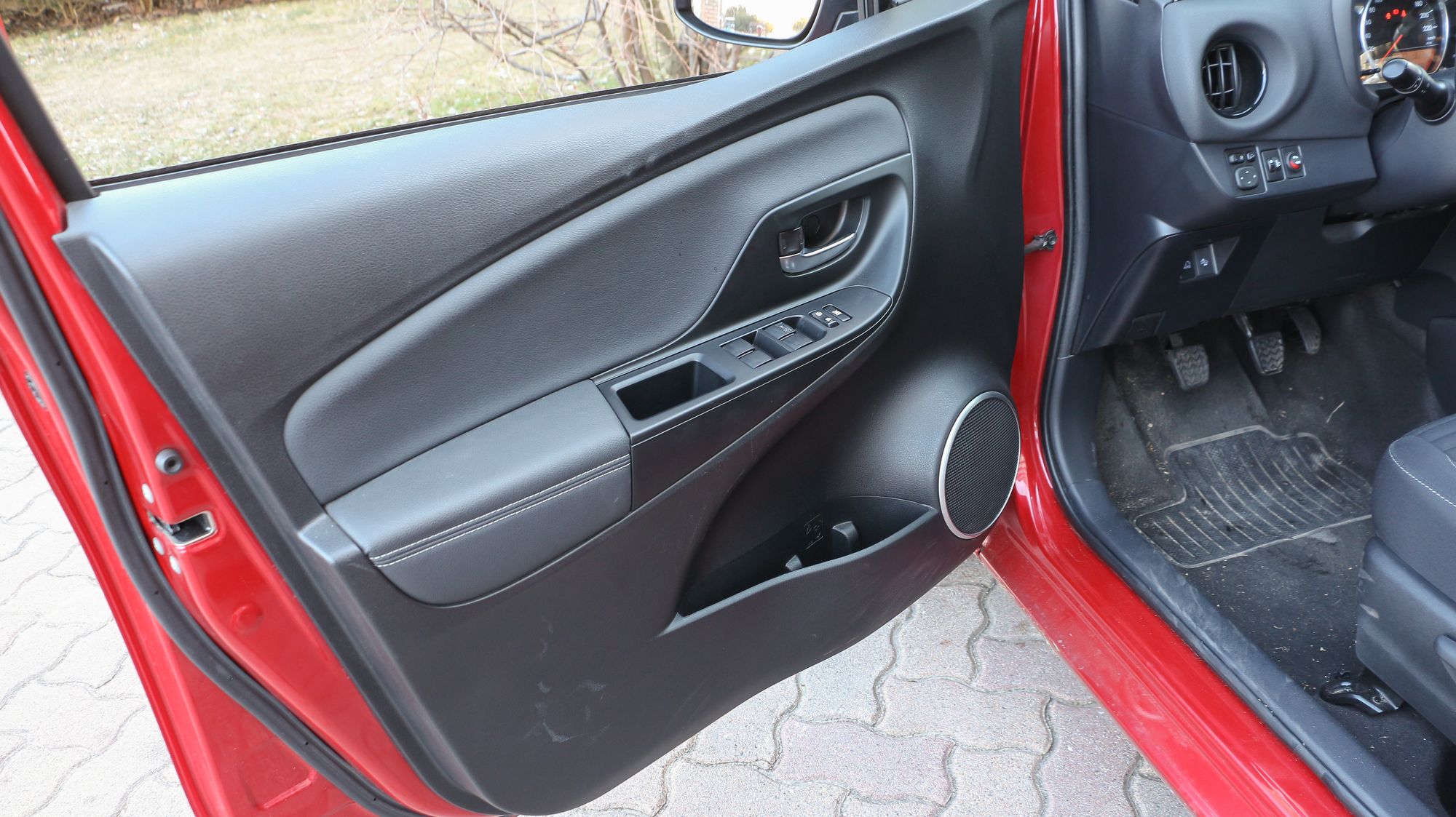 Ahogyan a műszerfalra, az első ajtókra is jutott a többinél világosabb tónusú betét, az ablakemelők közül japán hagyomány szerint csak a sofőré automata