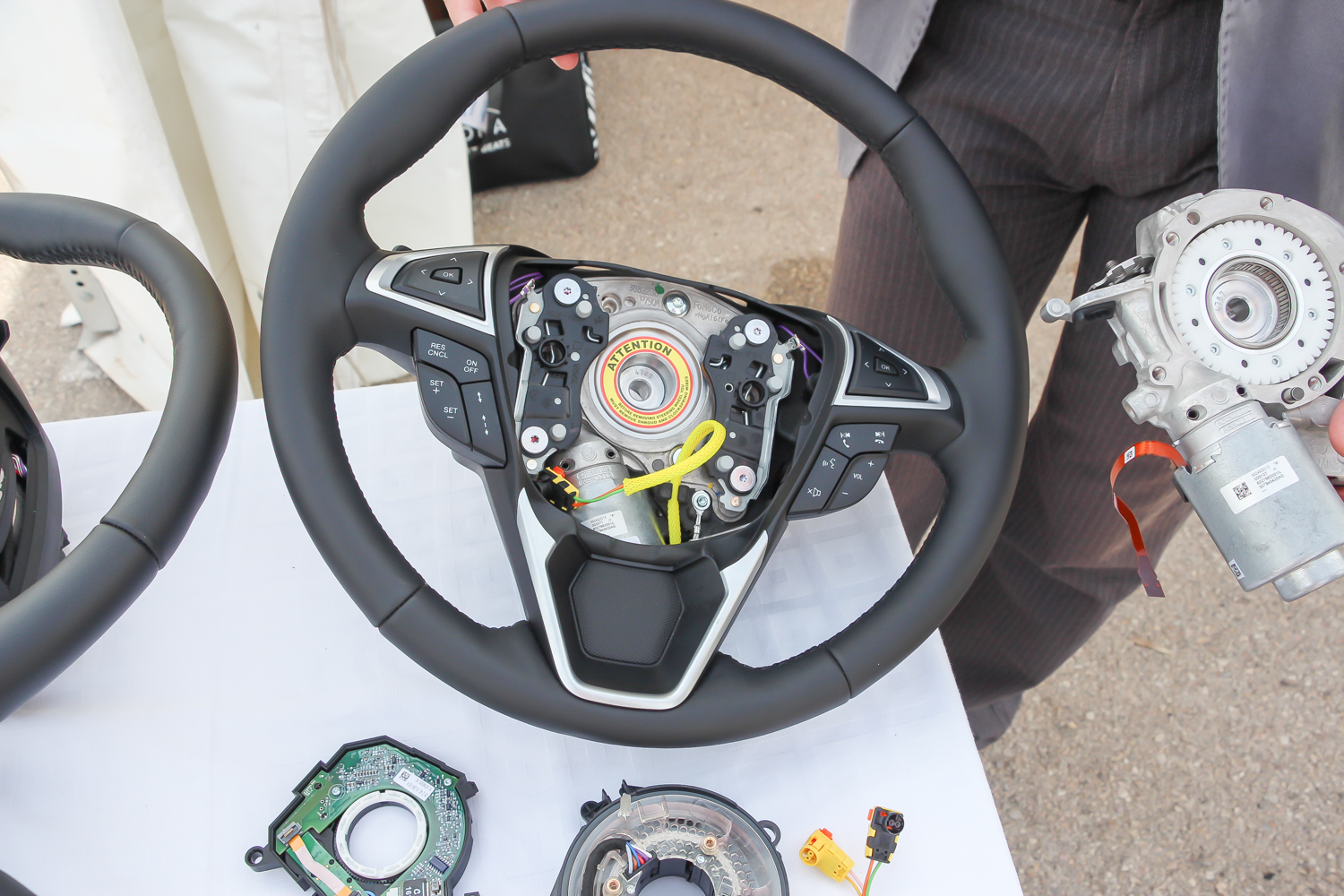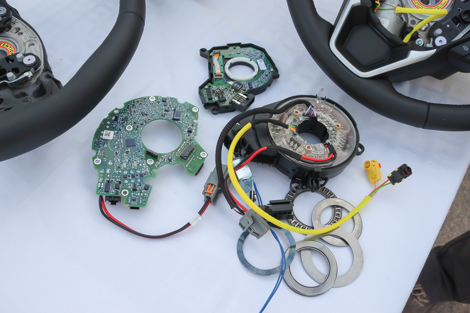 Nem zsibvásárban jártunk, hanem a gyári mérnökök kis kempingasztalánál, ahol megnézhettük a kormányzás áttételét magában a kormánykerékben módosító szerkezetet. A sportos vezethetőséget fokozó extra jövőre lesz elérhető
