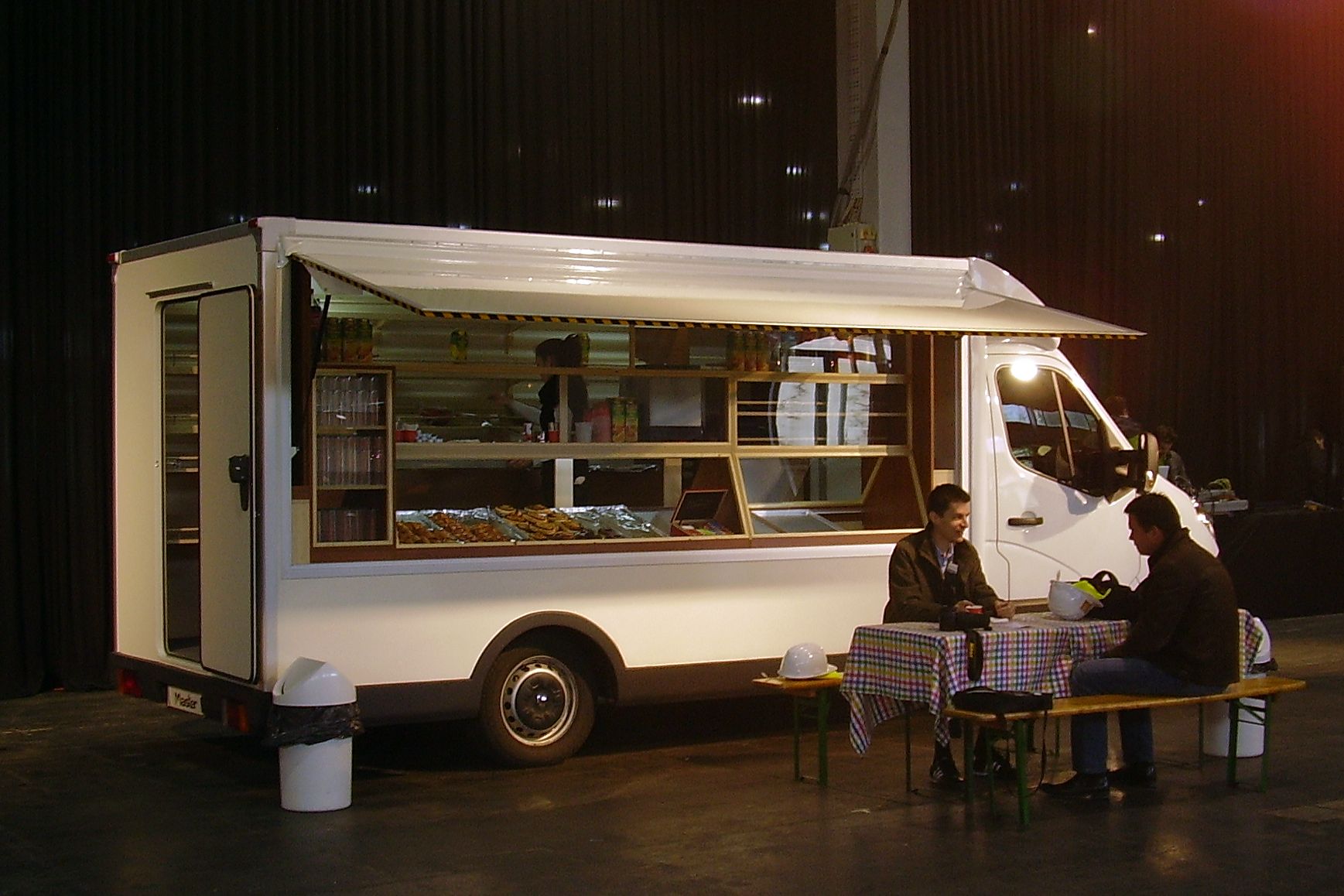 Pékáruk árusítására alkalmas Renault Master - a sajtó munkatársait is innen látták vendégül. A felépítmény magyar tervezés és kivitelezés