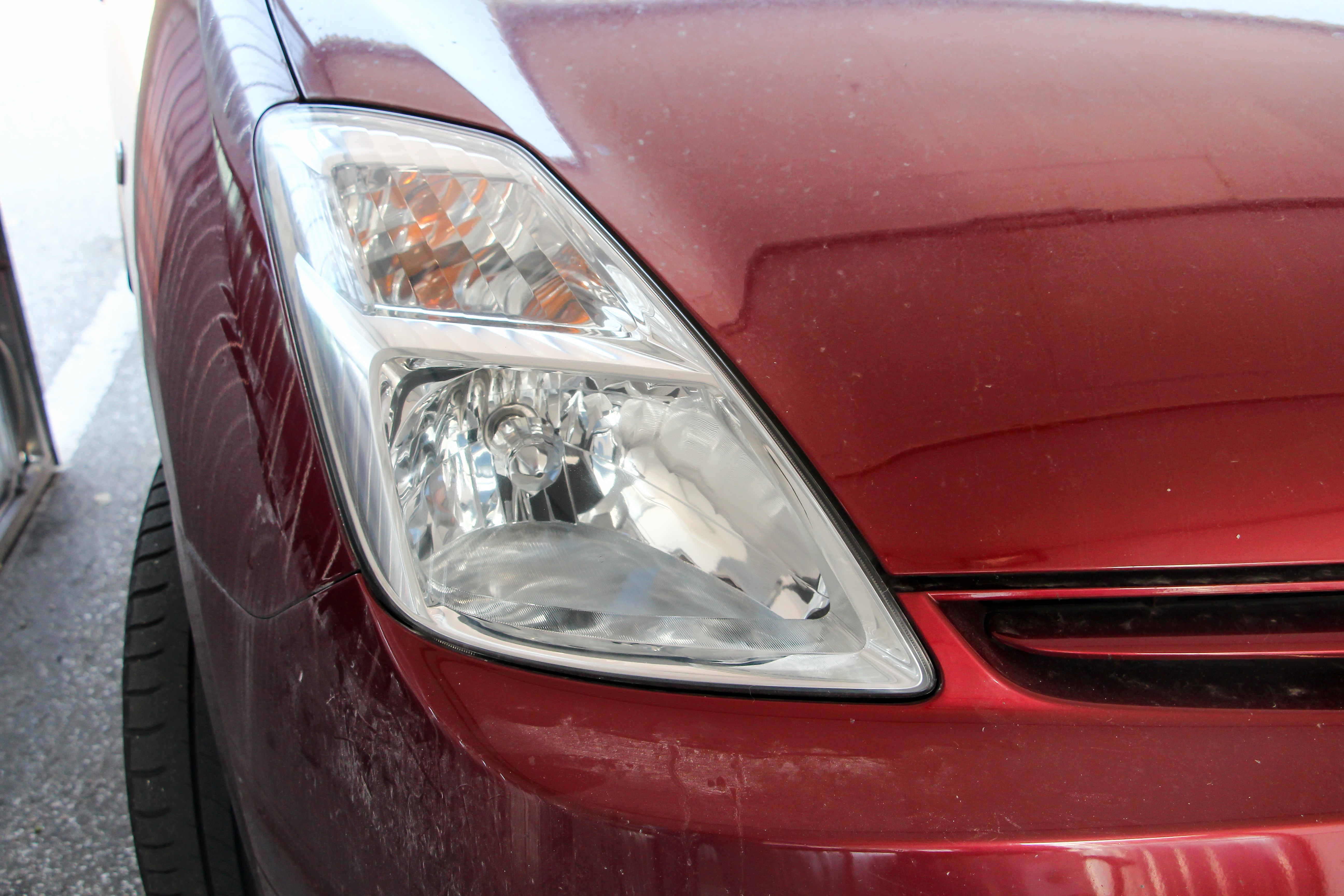 Enyhe mattulás, ami a műszaki vizsgán még határeset. Alul még tűrhető, felül már eléggé opálos a 14 éves Prius fényszórója. A japán autók fényszórólakkban is erősek amúgy, európai modelleknél 5-10 év után is szükség lehet a fényszórók javítására
