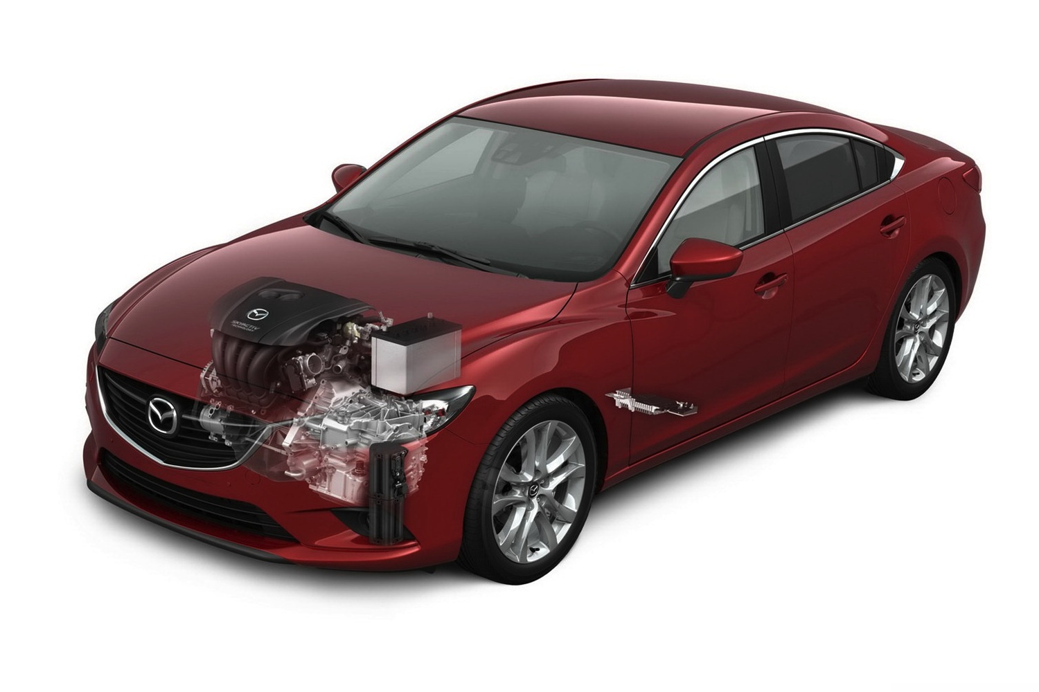 A vezetőközpontú új 6-os forgalmazása - legalábbis Oroszországban - kétféle benzinmotorral indul, a Skyactiv-G 2,0 literes változata 150 LE-t és 210 Nm-t mozgósít, míg a 2,5 literes 192 ló- és 256 Nm erejét adja sofőrjének. Az ízlés szerint 6 fokozatú manuális vagy automata váltó mellett mindkét motor jellemzője az alapáron biztosított i-stop stop-start rendszer. A 2,5 literes négyhengeresben mutatkozik be először a Mazda i-ELOOP névre hallgató fékenergia-visszanyerő applikációja, melynek különleges vonásai, hogy abban a pillanatban elkezdi az áramtermelést, amint a sofőr lelép a gázról, valamint, hogy az így keletkezett energia nem hagyományos akkumulátorban, hanem annál gyorsabb töltődést és hosszabb élettartamot jelentő kondenzátorban kerül tárolásra. Az innen származó elektromos árammal különféle alrendszereket hajtanak, ezzel is levéve a terhelést a motorról, melynek így jelentősen javulhat fogyasztása.