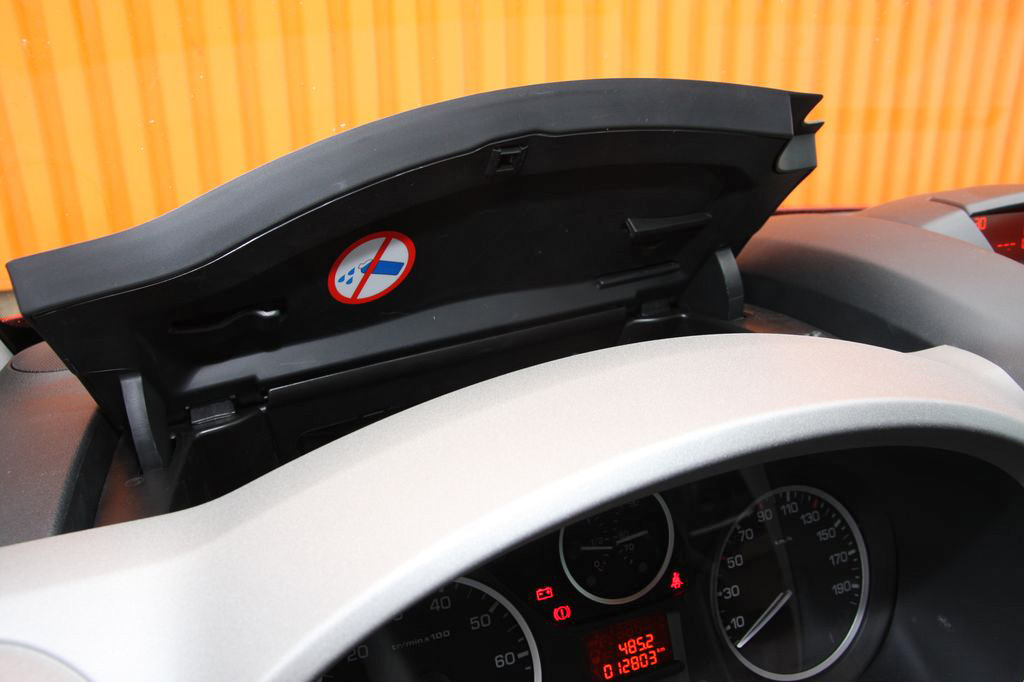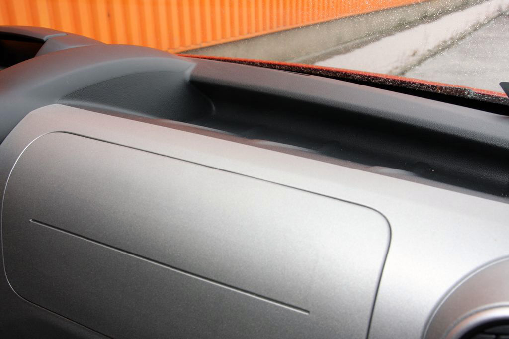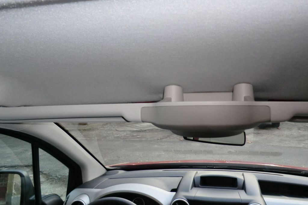 Nem zavaró, a praktikus karakternek megfelelő, hogy a temérdek rakodóhelyet adó műszerfal összes eleme kemény plasztik. A műanyag kormány fogása sem rossz