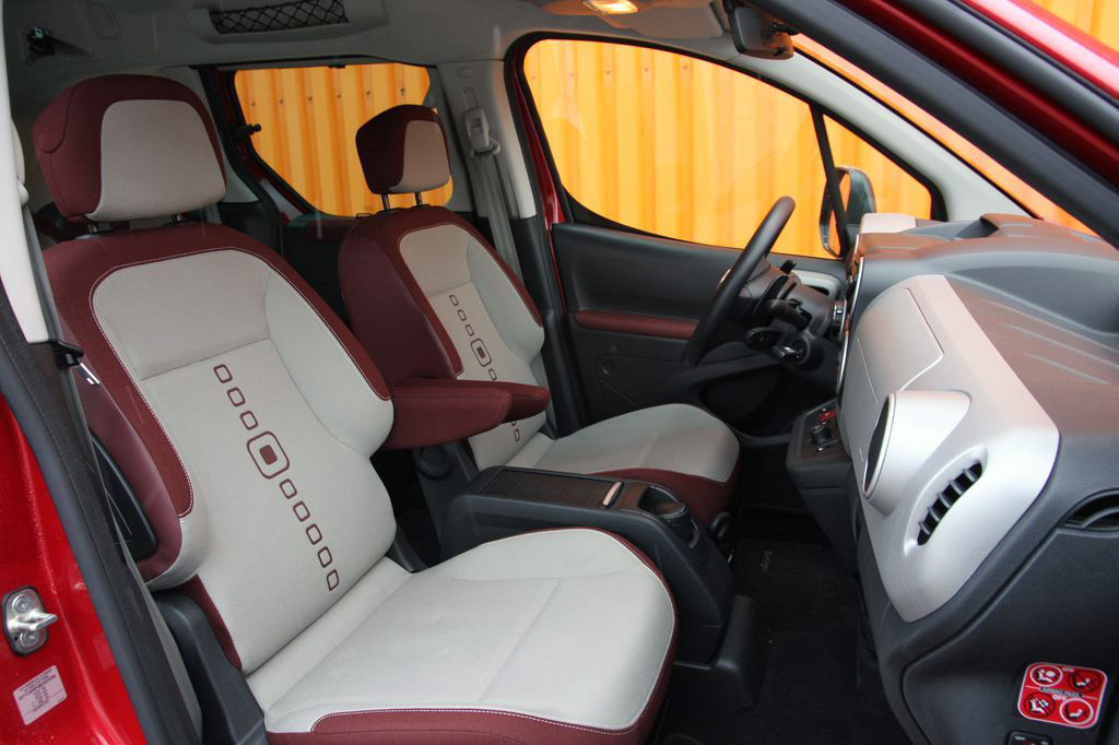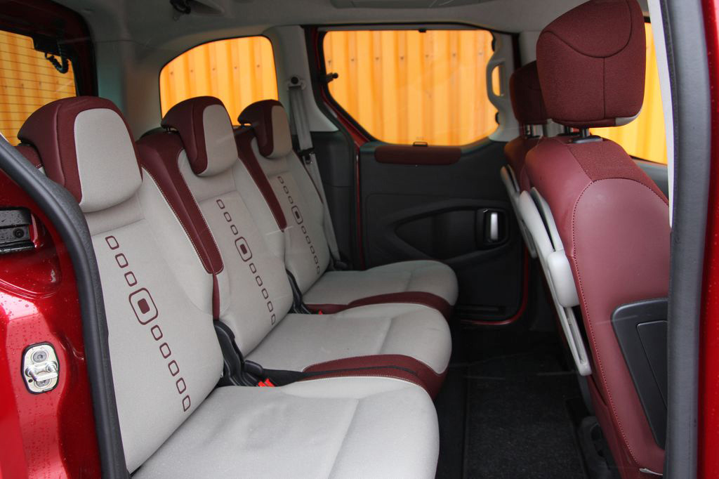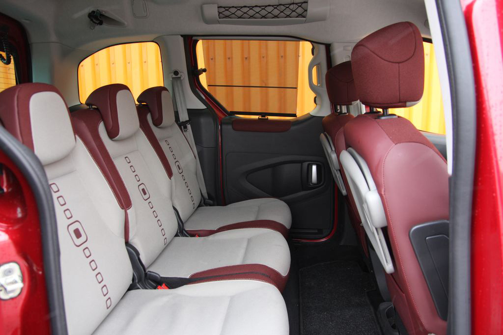 Kényelmesek a látványosan színes ülések, a helykínálat bőséges, a hátul síkpadlós lábtér valódi egyterűhöz illő, a fejtér annál is nagyobb. A tolóajtók átlag feletti finomsággal nyithatók-zárhatók, váltókar híján az első ülések közé tároló tehető, vagy ott könnyedén lehet hátrasétálni