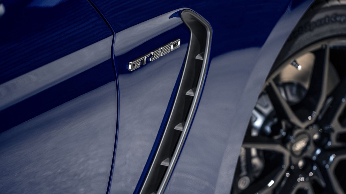 Mivel a Shelby GT350 egyik kedvenc terepe a versenypályák világa, ezért a jobb teljesítmény és a gyorsabb körök elérésének érdekében számos aerodinamikai módosítást eszközöltek az új modellen. Ezek között említhető a teljesen új hátsó szárny, amely extraként a komoly versenyautókon megszokott Gurney-lapocskát is kaphat. Emellett látványos az új hűtőrács, amelyet a Ford Performance a szélcsatornában optimalizált, szintén az aerodinamikai hatékonyság érdekében.