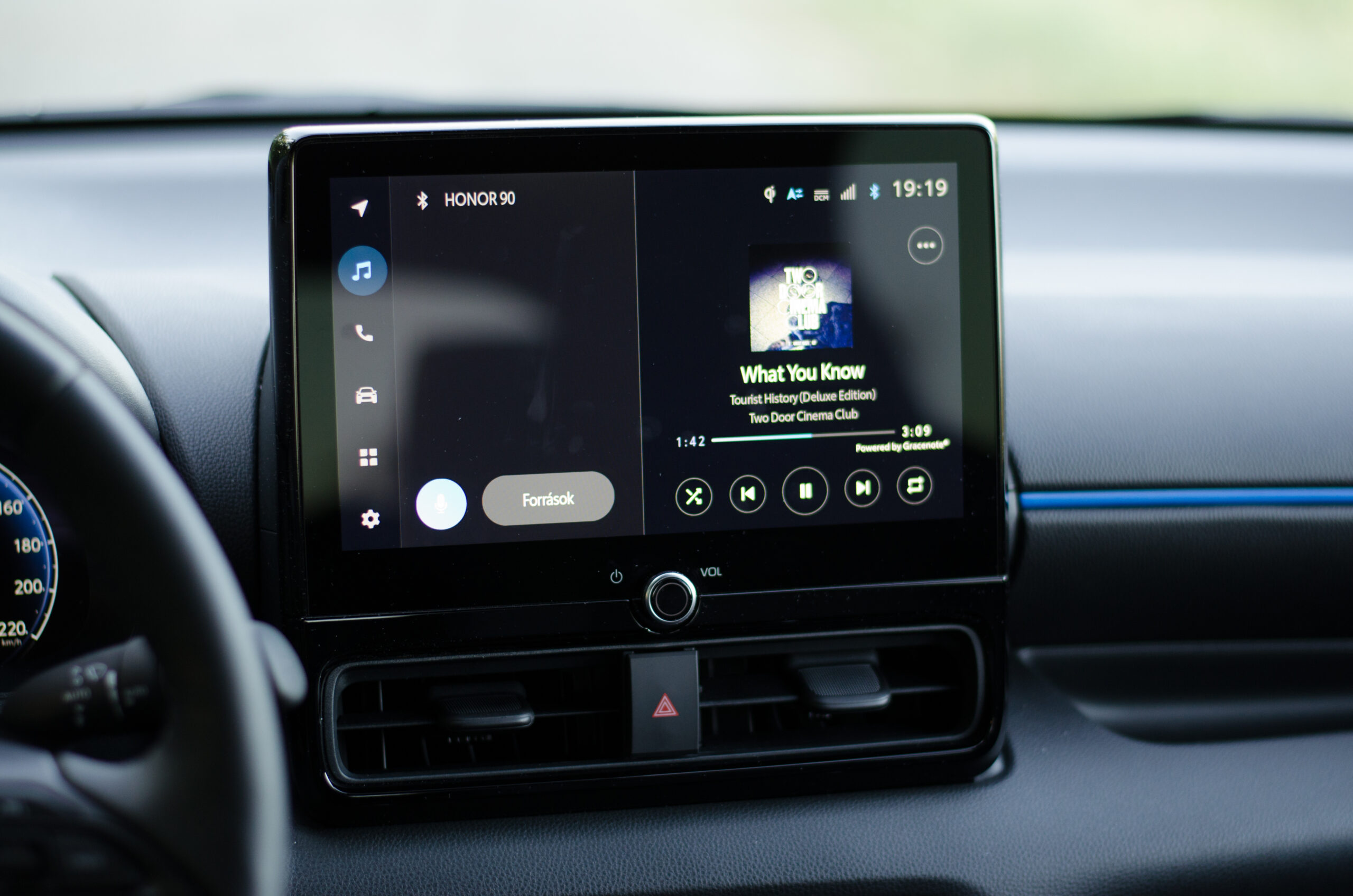 Ehhez a modernebb köntöshöz tesz hozzá leginkább a frissítés, már ami a látható részleteket illeti. A Yaris beltere ugyanis komoly felszereltség-injekciót kapott, alapárassá vált a digitális műszeregység, illetve modernebb infotainment rendszer kapott helyet a műszerfal közepén. Ebbe a konkrét tesztautóba ráadásul mindenből a legnagyobb került, így a sofőr előtt 12,3 colos a kijelző, a központi érintőképernyő pedig 10,5 colos. Ettől persze nem lesz prémiumtermék a kis Yaris, hiszen - lássuk be - ezek már nem is prémium extrák manapság. Éppen ezért mindezt ugyanaz a költséghatékony anyaghasználat, valamint ergonomikus, de egyszerű megoldások veszik körül.