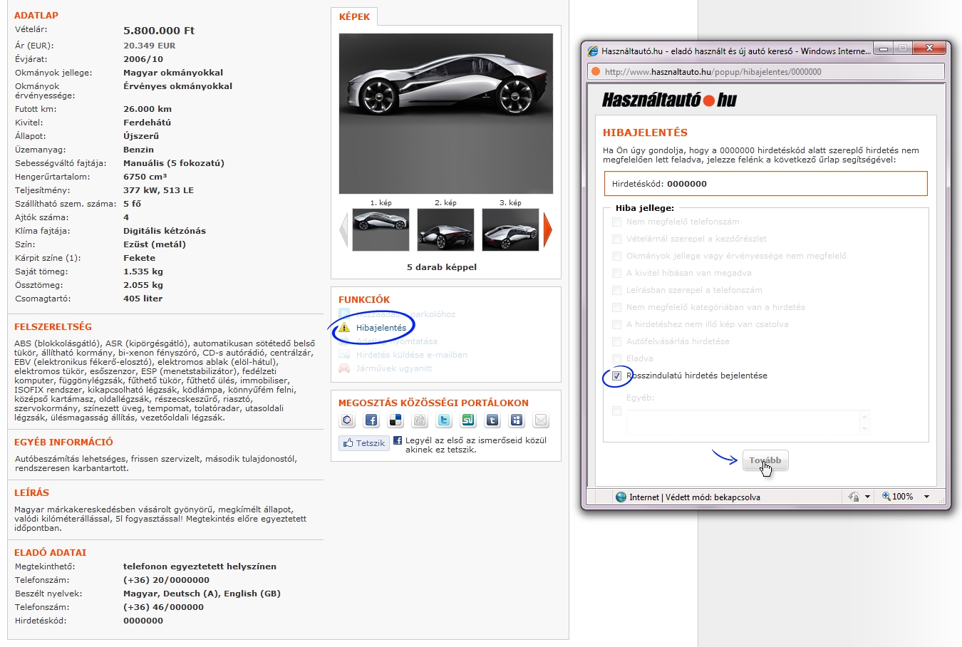 Jelentse nekünk, ha gyanús hirdetést talál a Használtautó.hu oldalon!