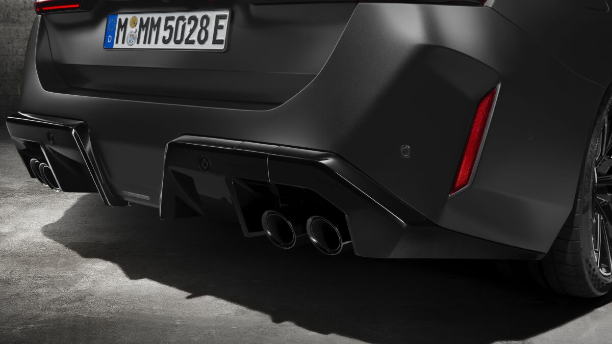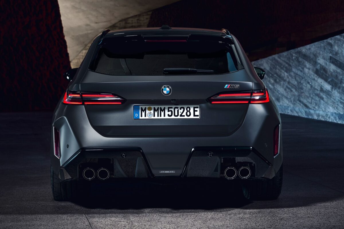 A vesék körvonala az M5 Touringon is világít, hátul pedig főként a dupla ikerkipufogón akad meg a szem, amelyet egy szintén kettéosztott diffúzor ölel körbe