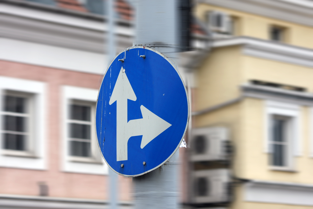 - Kötelező haladási irány jelzőtábla, ha a megfordulást nem jelöli