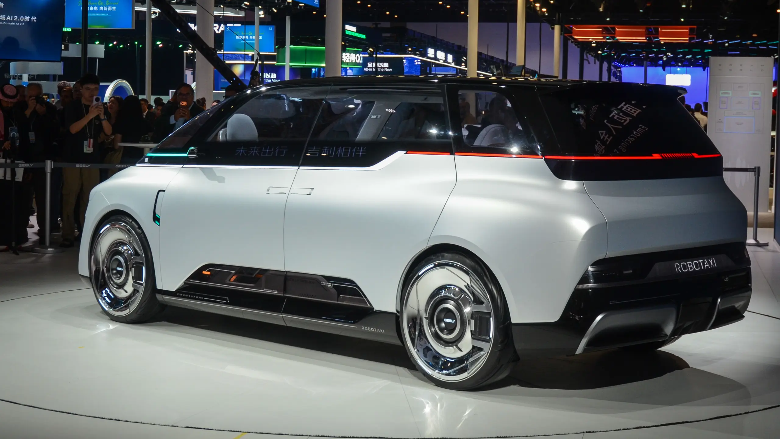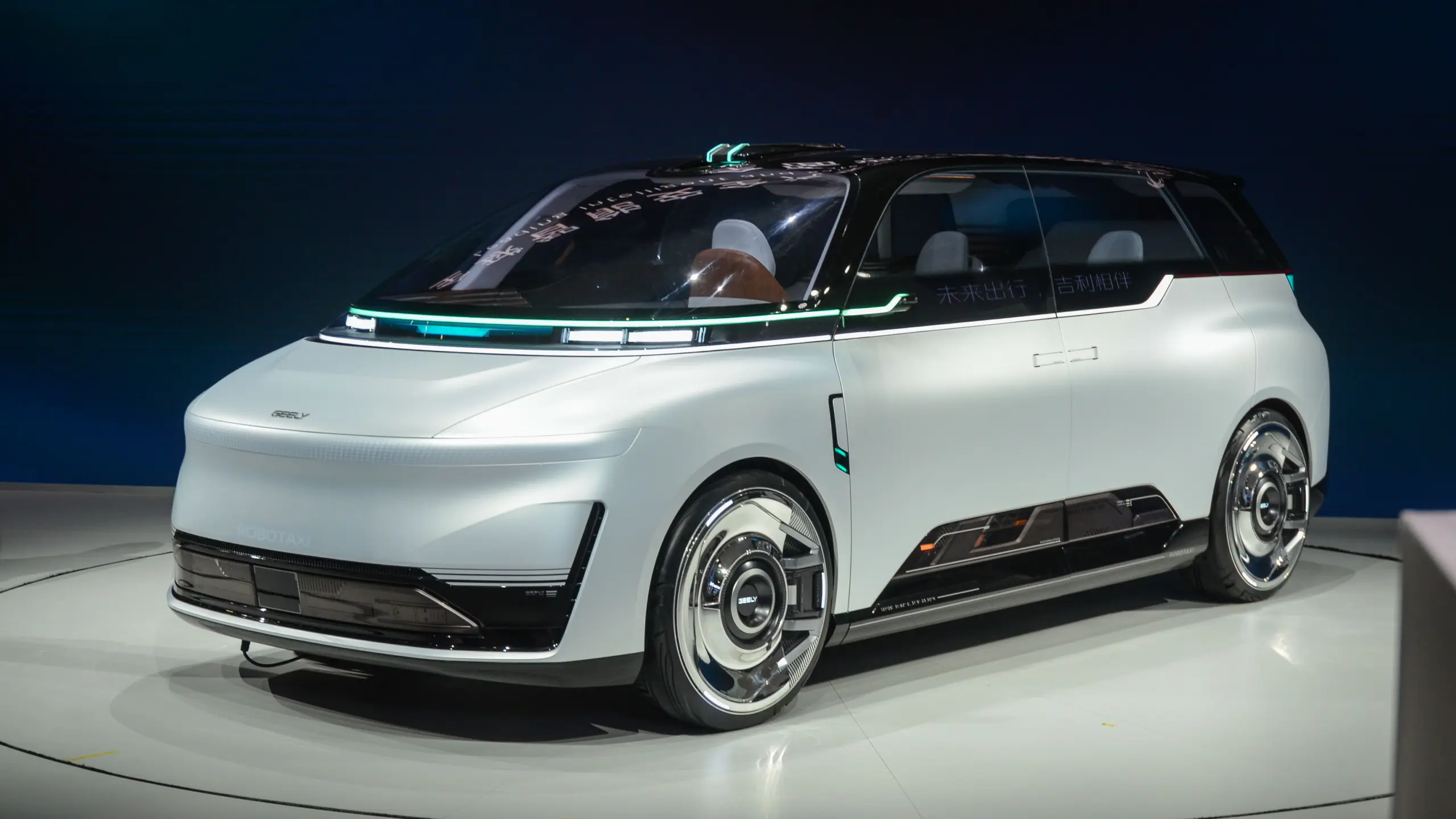A kiállított autók közül talán a legjelentősebb az EVA Cab, amely Kína első, kifejezetten önvezetőnek tervezett robotaxija. A márka állítása szerint az újdonság 4-es szintű önvezetéssel rendelkezik, vagyis emberi beavatkozás nélkül képes meghatározott környezetben közlekedni, illetve nem igényli a sofőr folyamatos figyelmét, akár vészhelyzetekben is képes önállóan reagálni. A Geely hangsúlyozta, az EVA Cabot globális terméknek szánják, így az sem zárható ki teljesen, hogy egy nap akár itthon is megjelenhet. Ugyanakkor ennek még számos jogi akadálya lesz, hiszen az EU-ban még csak Hollandiában adtak engedélyt bizonyos 2-es szintű önvezető rendszerek használatára, ahol követelmény az autóvezető folyamatos figyelme.