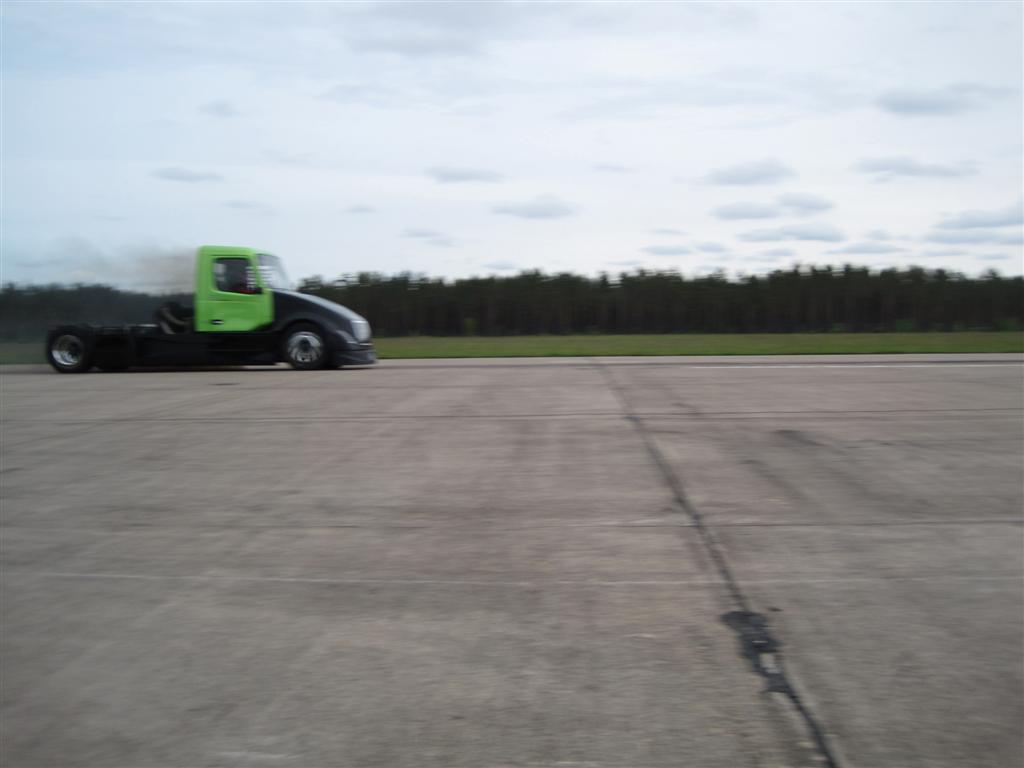 Már a 160 feletti sebesség sem tűnik rossznak egy kamiontól, de azért ezt egy kis belepiszkálással, egy utcai vontatóval is el lehet érni. Sokkal beszédesebb Ovebrink 16 literes 2000 lóerős és 5000 Nm-es Volvo VN kamionjának végsebessége, ami a célvonalon elérte a 250-et.
