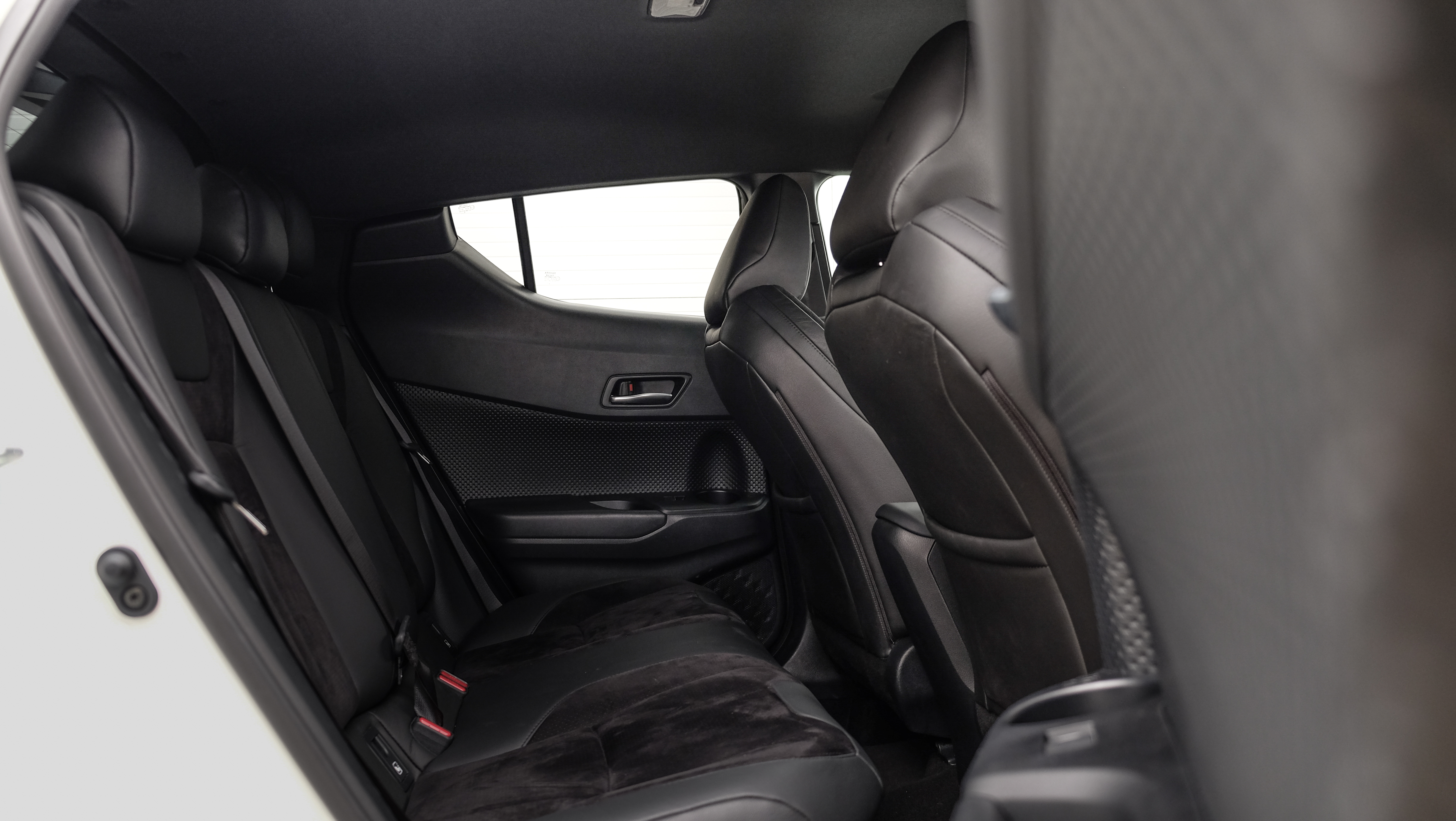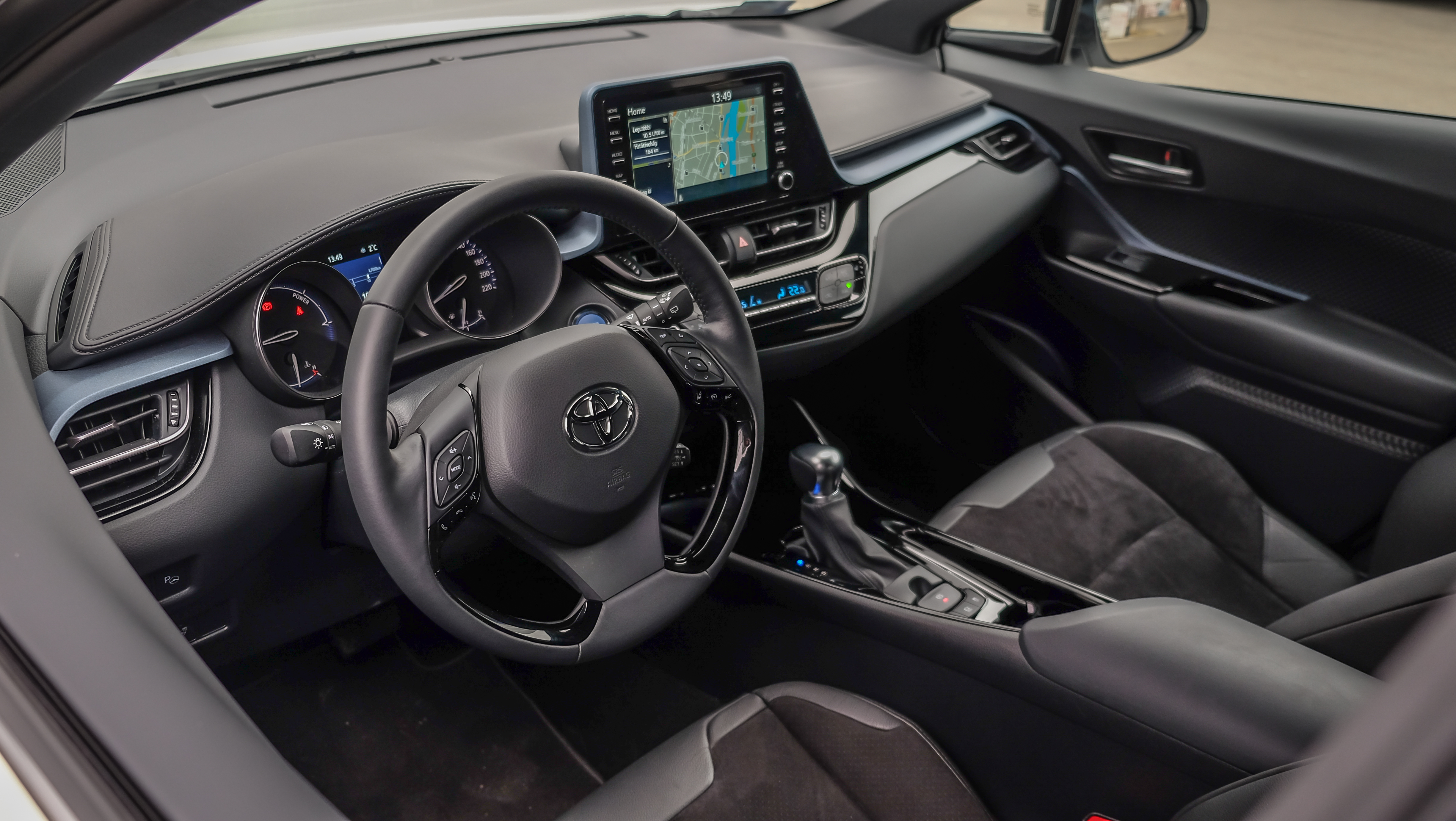 Kezelőszerveit tekintve szintén nem kell számítani nagy trükkre, kormányát azonban mindenképp kiemelném, mind fogása, mind súlyozása kellemes élmény, azonnal úgy érezzük, hogy már indulnánk is a C-HR-rel. Gombnyomásra éled a rendszer, de motorindítás nincs, ugyanis a hibrid hajtással mindenképp elektromos üzemmódban fogunk tudni elindulni. A friss C-HR legfontosabb pontja mégiscsak az új hajtáskombináció, mely a Corolláéval is közös és már az új 2,0 literes benzinmotorra épül. A friss hajtás rendszerteljesítménye 184 lóerő, mely már leírva is megadja azt az izgalmat, amit kinézünk a C-HR-ről, de igazán csak akkor értjük meg, ha elindulunk vele. A Toyota legújabb hibridrendszerének fontos része, hogy az eddigiekre jellemző késlekedést, lustaságot, kelletlen viselkedést sikerült a nullához közel redukálni.Kevésbé csábító a hátsó, mint az első sor, az Alcantara huzat otthonossá teszi