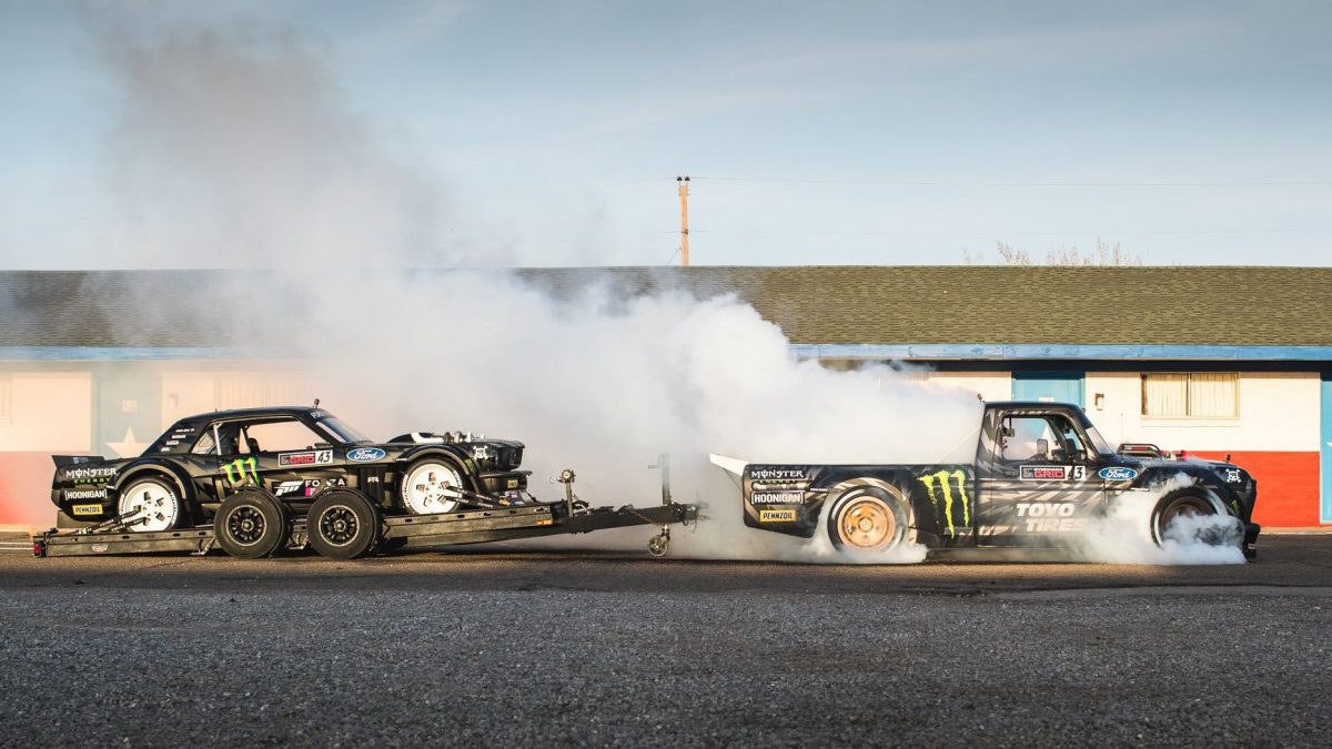 A Hoonitruck vontatja a Hoonicornt. Mindketten szerepet kaptak a Gymkhana 10-ben