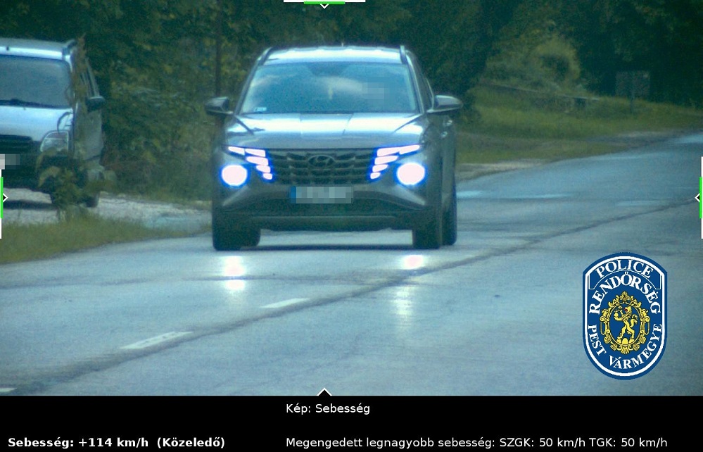 A következő fényképen egy sportosabb Seat sofőrje érezte úgy, hogy helyén való 113 km/órával közlekedni a megengedett 50 helyett. A rekorder pedig egy jóval újabb, ám továbbra sem kimondottan versenycélra tervezett Hyundai crossover vezetője, aki 114 km/órával közlekedett a korábbiakkal azonos sebességhatárnál. A Pest vármegyei egyenruhások fejenként 210 ezer forintos bírsággal jutalmazták a felelőtlen és értelmetlen döntéseket.