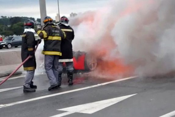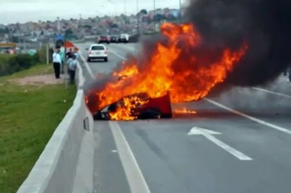 megtalálta az okát, miért gyulladtak ki sorozatban a 458 Italia modelljei. Egy ragasztót kiáltottak ki bűnösnek, amely a forró kipufogó közelében, a hő hatására elengedte a kerékjárat belső burkolatát, és hajlamos volt lángra kapni. A gyár a közleményében elismerte a hibát, a konstrukciót azonnal módosította, a már átadott példányokat pedig szervizbe rendelte, hogy azokon is megtörténhessen a korrekció. Nos, úgy látszik, ennek a képeken látható 458 Italiának a brazil tulajdonosa még nem ért rá felkeresni a helyi Ferrari központot, de pechje volt, mert az elmúlt hétvégén, a Formula-1-es Brazil Nagydíj előtt, a Sao Paulo-i autópályán a kocsi lángba borult, és mire a tűzoltók kiérkeztek, a tűzpiros sportautó jóformán megsemmisült.