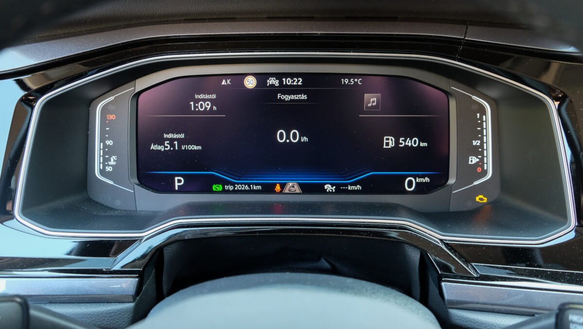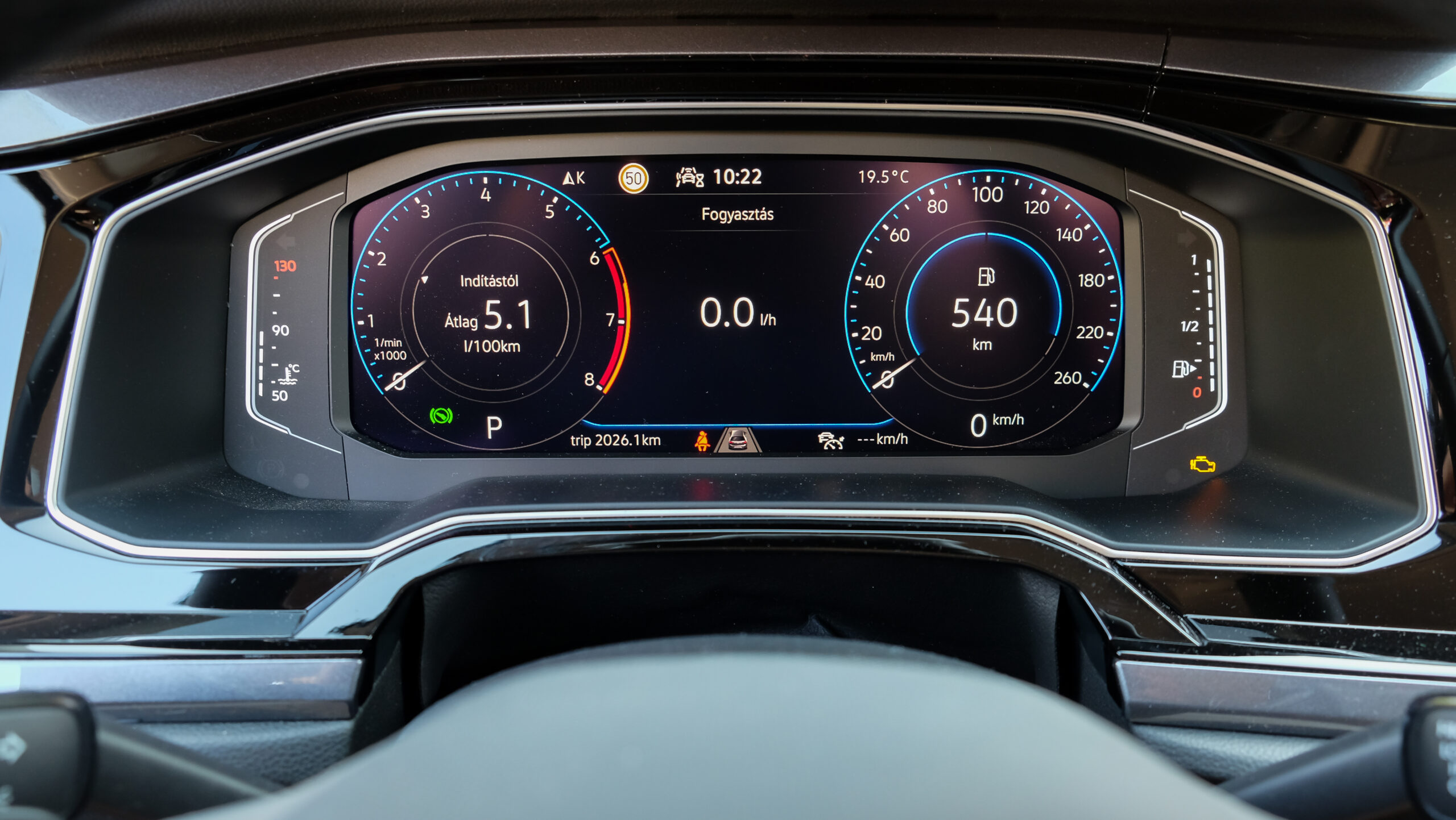 Vagy talán épp azzal, hogy még mindig egész kicsi, nem egész 4,1 méter hosszú, ugyanakkor helykínálatával már a kompakt modelleket közelíti, futáskultúrájával és tudásával is. A Style verzió nem csak a LED mátrix adaptív fényszórókat, hanem sok más mellett a távolságtartós tempomatot is alapáron adja. Döbbenet, de ez a Polo nem csak tudásával, azzal is nagyautós, hogy városban a leginkább nyűgös. A DSG váltóval az álló helyzetből indulás picit darabos, utána már finoman és gyorsan kapcsol, a hosszú hetedik fokozattal pedig meglepően jó utazóautó. Fogyasztásával is: a 130 km/órás sebesség is simán 6 liter alatti átlaggal futható, országúton még akár 5 liter alá is bemehetünk, ami üdítő élmény azok után, hogy városban simán adódnak 9-10 literes értékek is. Én sok hosszabb etapot mentem vele, így a tesztátlagom korrekt: kijelző szerint 5,9, tankolás szerint 6,1 l/100 km lett.