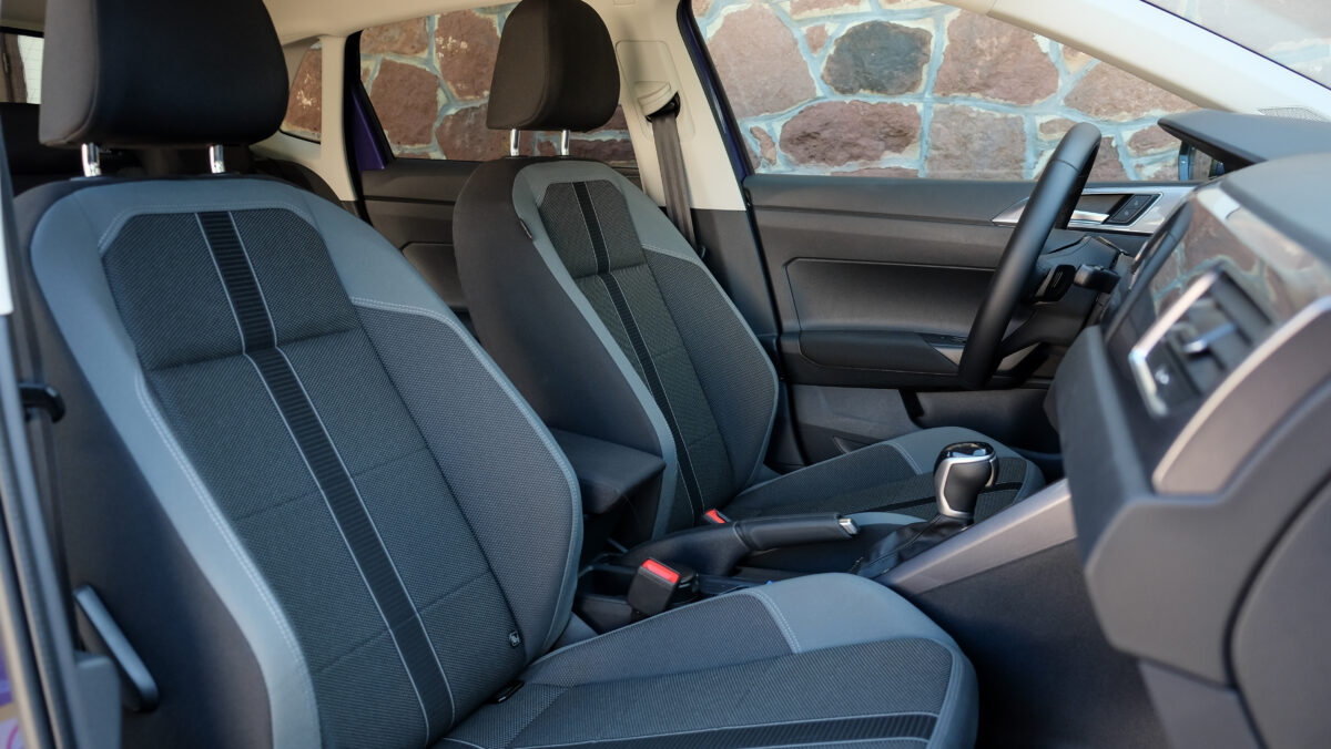 A beltéri minőség a márkától megszokottan korrekt, ugyanakkor a tesztautó szürke műszerfalával németesen komor volt belülről, nem úgy, mint kívülről, ugyanis a frissítéssel érkezett "élénk viola metál" lila fényezés szokatlan, de mindenképp érdekes színfolttá tette a hazai utcaképben. Érdekesség, hogy míg korábban a beltér is színezhető volt, most nem az, a Polo csakis szürke belű lehet. Viszont funkcionális, nagyok az ajtózsebek, kényelmesek az ülések, melyek a középső Style felszereltség esetén elöl már "sportülések", mindenképp jó tartásúak. Nagyok az ajtózsebek, a kevéssé praktikusan érintőfelületes digitális klímapanel alatt vezeték nélküli töltőpad is helyet kapott.