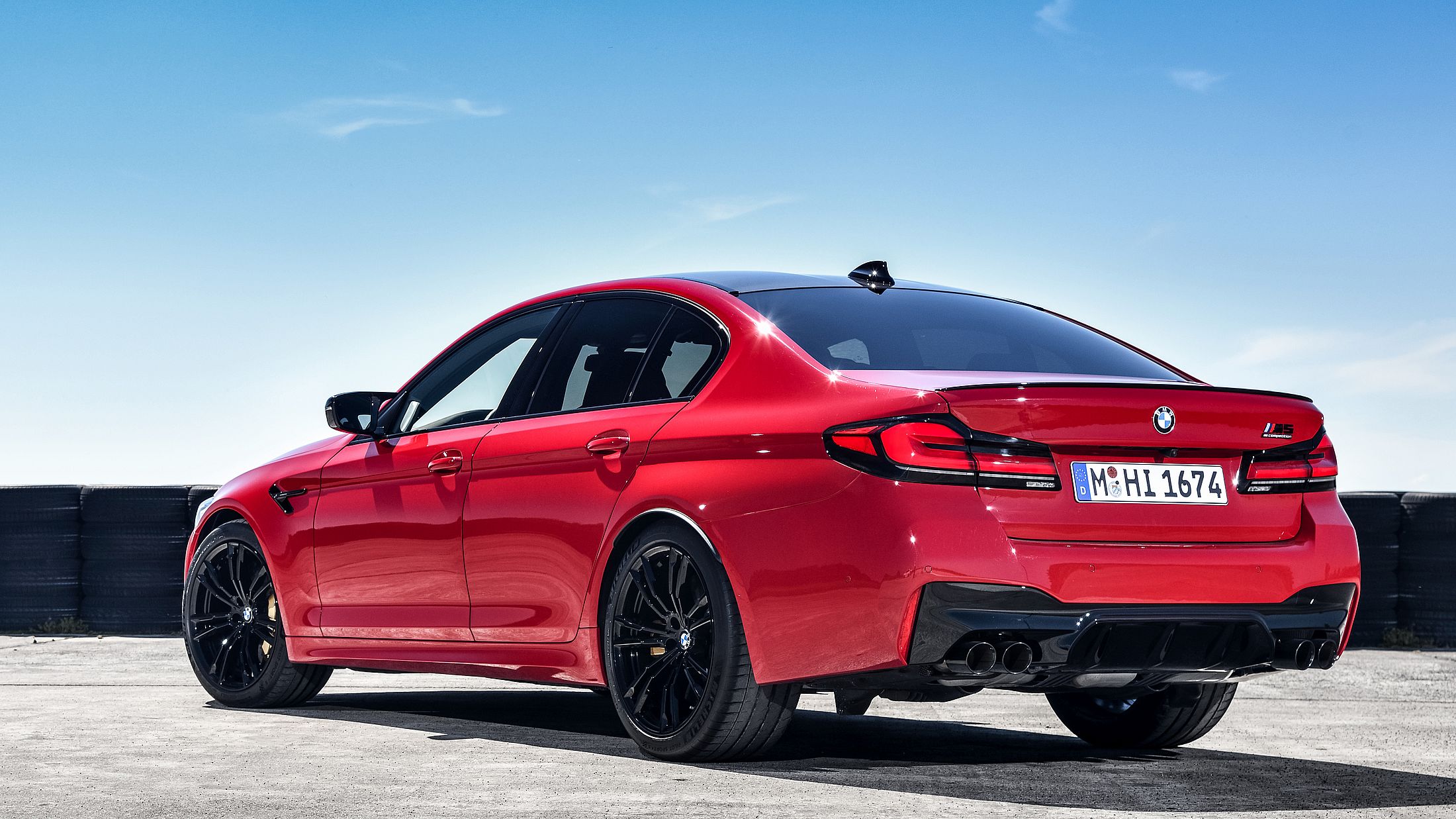 Természetesen az M5 is ugyanazokat a formai újdonságokat kapta meg, mint a sima változatok. Újak tehát a fényszórók, a hűtőmaszk és a lökhárítók, persze utóbbiak jóval sportosabb benyomást keltenek a hatalmas légbeömlőkkel. A lámpák rajzolata hátul is új, illetve a diffúzoron is módosítottak. Emellett 5 új szín is megjelent, köztük a képeken látható Motegi vörös fényezés, illetve új 20 colos könnyűfém felnik is rendelhetők az autóhoz.
