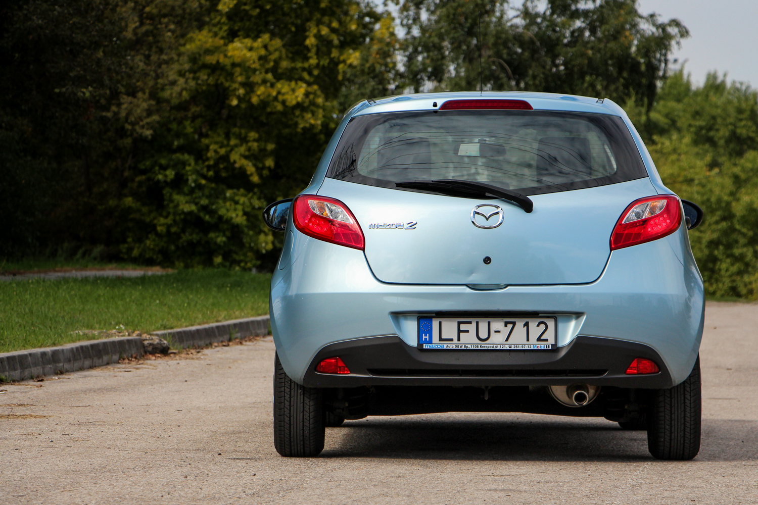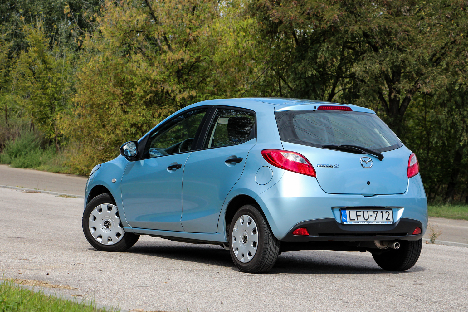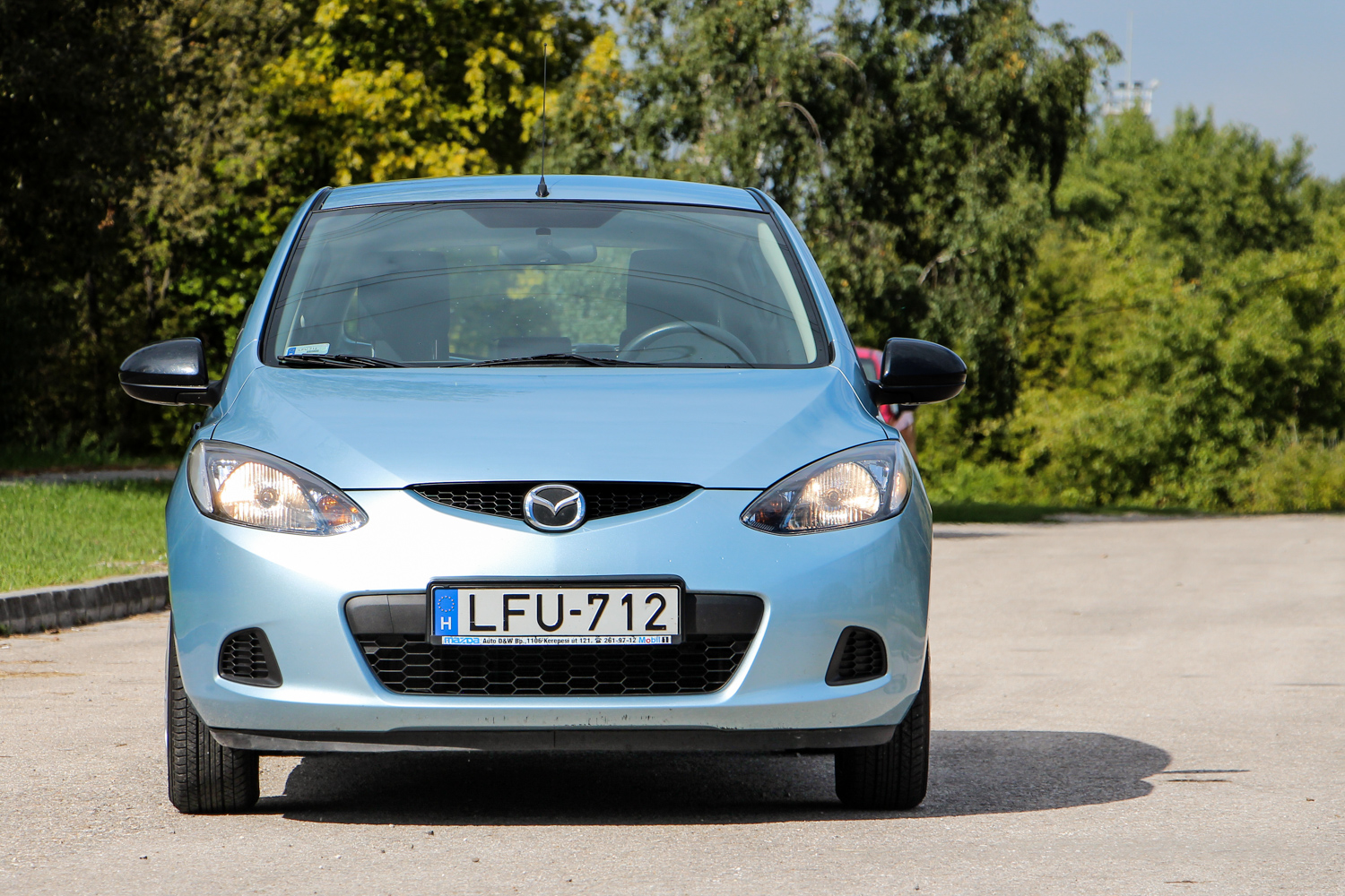 Különös a szélvédő, fotózás közben feltűnt, hogy furcsán hullámosan tükröződnek benne a távvezetékek és egészen meglepő, hogy ez a gyári üveg. Nem volt törve az autó és cserélve a szélvédő, ezek szerint ilyet sikerült gyártani akkor a Mazdának, és utólag az oldalüvegeken is feltűnt ugyanez a hullámzás. A karosszérián egy szem rozsda nincs, persze egy 9 éves autón ne is legyen, ám a Mazdáknál ez annyira nem egyértelmű. A Mazda2-re viszont 12 évnyi átrozsdásodás elleni garancia is járt, így még van három éve a makulátlan karosszériaelemeknek. Kisebb-nagyobb sérülések azért akadnak rajta, ez a korral jár, de csak a jobb hátsó sárvédőív horzsolását lesz érdemes javítani, ott indulhat rohadásnak először. Fenntartása egészen egyszerű, csak kötelező szervizekből kért eddig, na meg persze benzinből. A Mazda2 így lehet igazi szerelem bárki számára, hiszen csalódást sosem okoz, ellenben mindig jó ránézni, és kiszállás után is csak jó élmények maradnak.