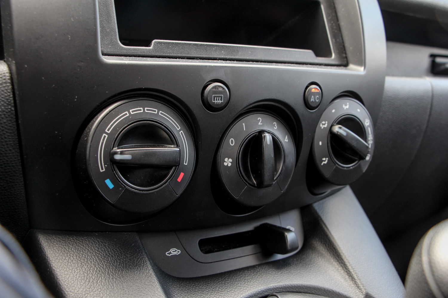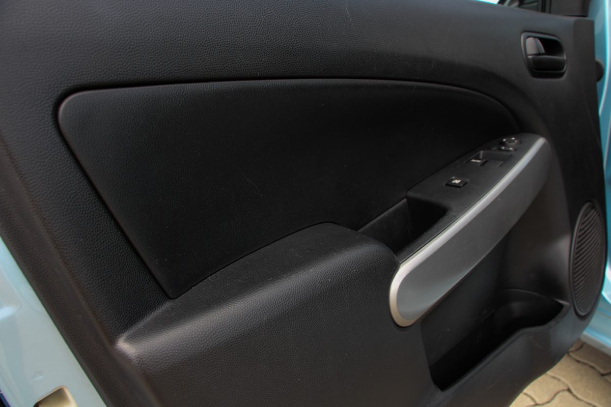 Egy dolog volt rettentő furcsa, ami tekintve a felhasznált anyagok minőségét, teljesen érthető. A karosszéria rendkívül hangos, nem zörög, vagy nyöszörög, masszív, de dobozszerűen dübög folyamatosan. Tekintve, hogy mindenhol rideg műanyagokat használtak, még az ajtókárpit könyöklőrészén is, ez nem is annyira furcsa eredmény. Pedig felszereltségét tekintve nem is alap, mivel elektromosak az első ablakok – a sofőré automata – és még ma is jéghideg levegőt fújó manuális klíma is volt a fedélzeten. Rádiónak ezen a szinten csak a bekötéshez szükséges előkészítést adta a Mazda. Na persze kaphattunk bele hagyományos rádiós fejegységet is, de volt ennél szebb, teljesen beépített kivitel is. Ennek viszont az az előnye, hogy a két DIN-es helyen a rádió alatt így pont marad egy okostelefonnyi kis polc. Ma már rettentő kevés az esélye annak, hogy látható helyre rakjuk a telefonunkat egy új autóban, így ez kimondottan tetszett.