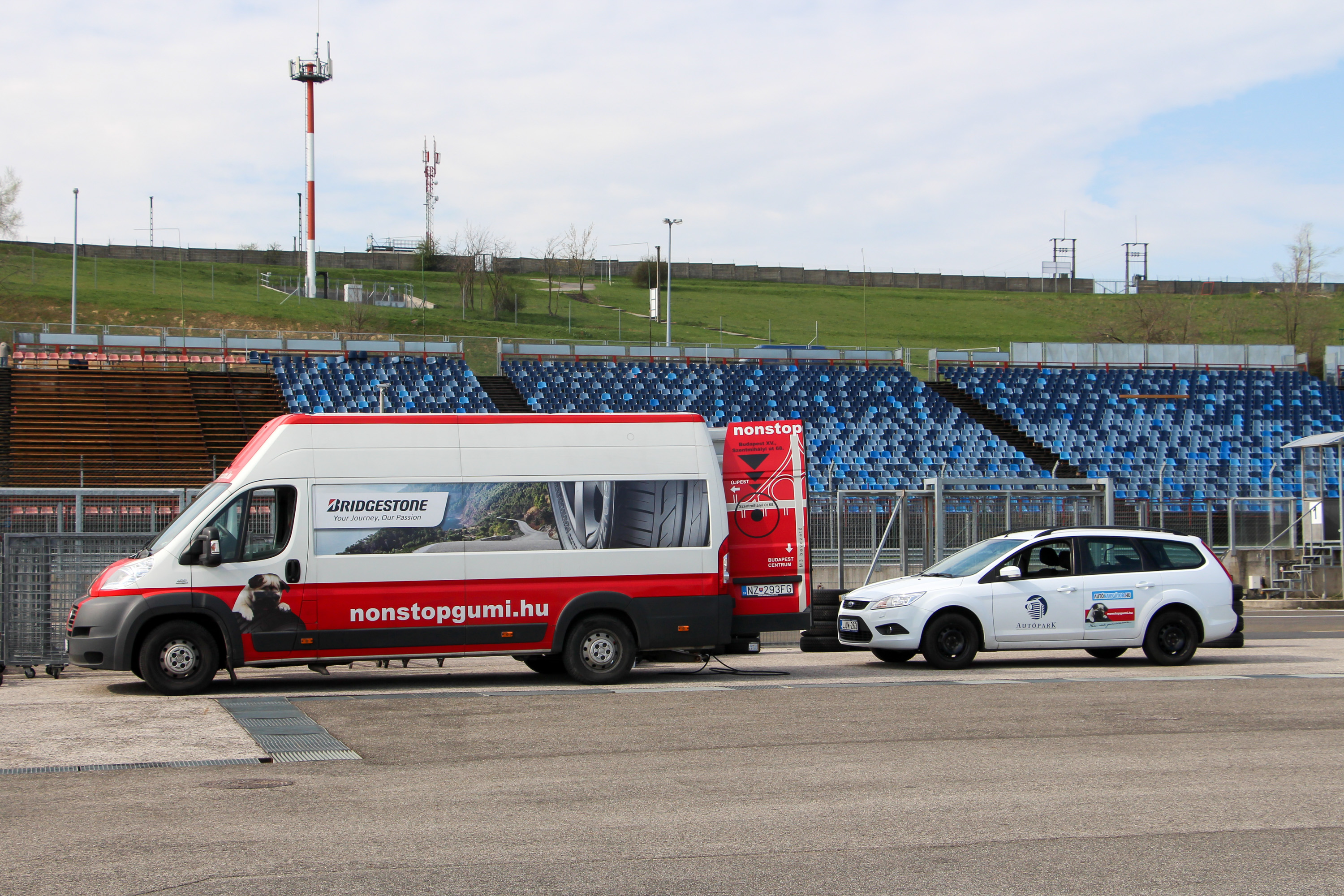 Vészfékezés szokás szerint a Hungaroring célegyenesében. A téli gumi teljesen leamortizálódott a négyévszakosokon is meglátszott a nyúzás