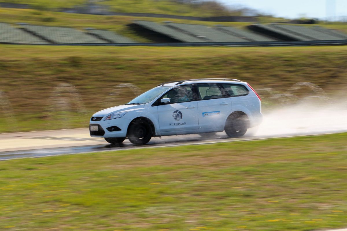 Vészfékezés 60 km/óráról a Tanpálya locsolt pályáján. A legtöbb abroncsnál nagyobb fékút adódott, mint szárazon, a százalékos eltérések csak hajszálnyit szerényebbek az egyes abroncsok között, mint szárazon, de kétszeres tempóról