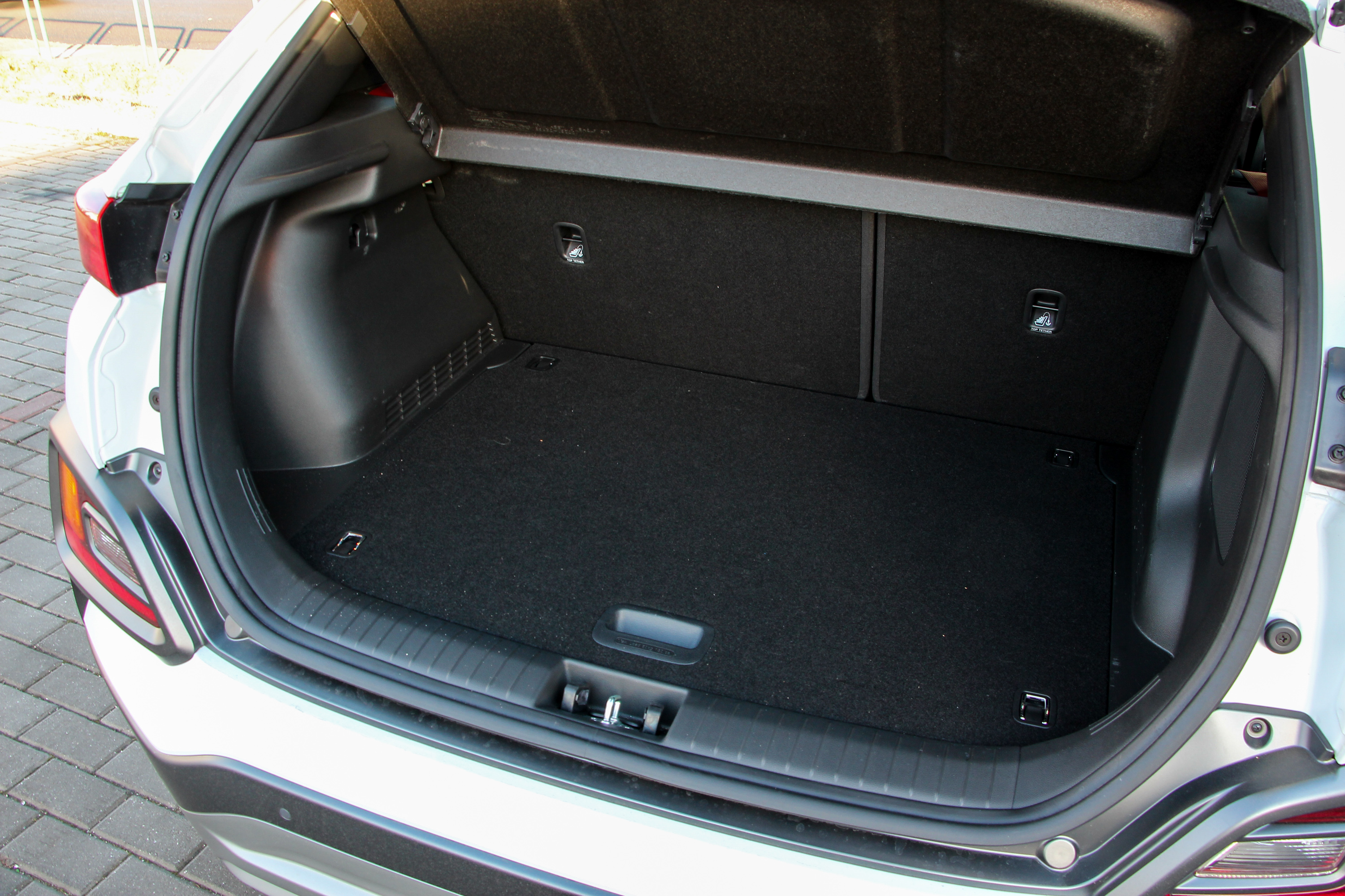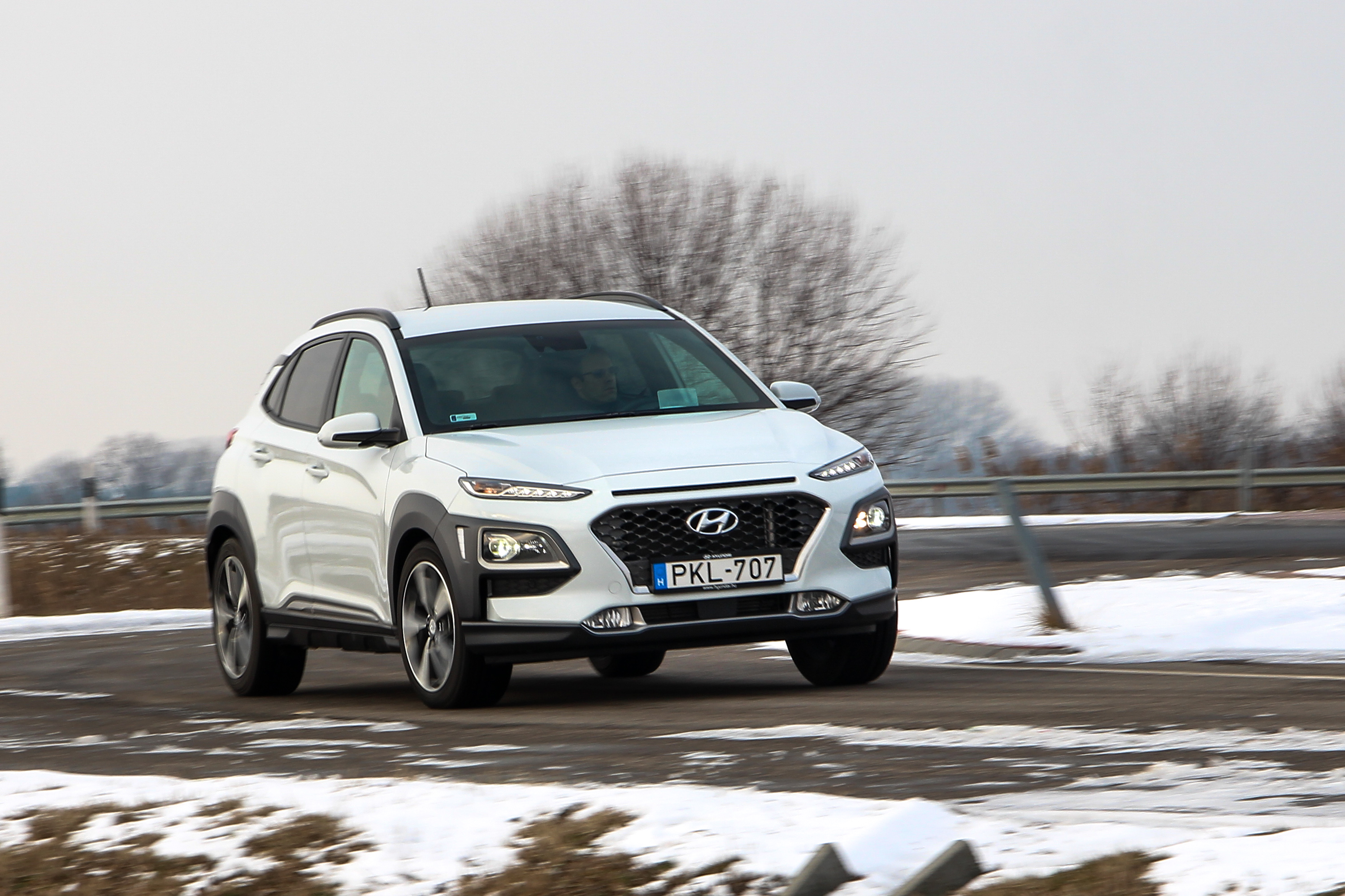 Csomagtere több mint 360 literes alapból, bár ebbe vélhetően beletartoznak a padló alatti rekeszek is, amiből két szinten is találunk, apróságokat bőven pakolhatunk ide. Az ülések síkba dönthetőek, több mint 1100 liter így a raktér. A hátsó ajtó sem szűk, ekkora autó már egy kis család igényeit ki tudja szolgálni, hátul is van 12 Voltos csatlakozó. Lehet fűthető az ülés és a kormány is, mindkettő elég acélos, a téli hidegben rendkívül hasznos, főleg, hogy a fűtés elég későn érkezik egy nulla fok alatti reggelen. A head-up display egész használható, bár az olcsóbb, plexire vetítő eszköz, teljesíti a feladatát. A Kona egész izgalmas megjelenésű kocsi, és akár vezetésre is az lehet. Bár kormányzása elektromos, semmiféle visszajelzése nincs, de legalább pontos, futóműve pedig feszes, már-már kemény, ami a mindennapokban kényelmetlenné is válhat.