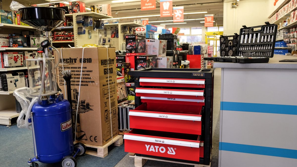 Böngészhetnek, mindent átnézhetnek, kiválaszthatják maguknak, ami leginkább szimpatikus. Egyes termékek egyszerűen raklapokon vannak kihelyezve, ezek gyorsan fogynak, míg más eszközöket, minőségi szerszámokat hívogató display polcokon találunk meg.Szinte minden, ha nem tényleg minden szükséges autós szerszám kapható, otthoni szereléshez és profi műhelyek számára is