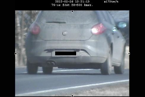 2012. február 24-én, 76-os számú főúton, lakott területen kívül, 175 km/h-t mért a traffipax berendezés az alábbi gépjármű elhaladtával, míg a megengedett legnagyobb sebesség 90 km/h. 130.000 Ft a közigazgatási bírság összege, mivel 85 km/h-val lépte túl a megengedett sebességet.