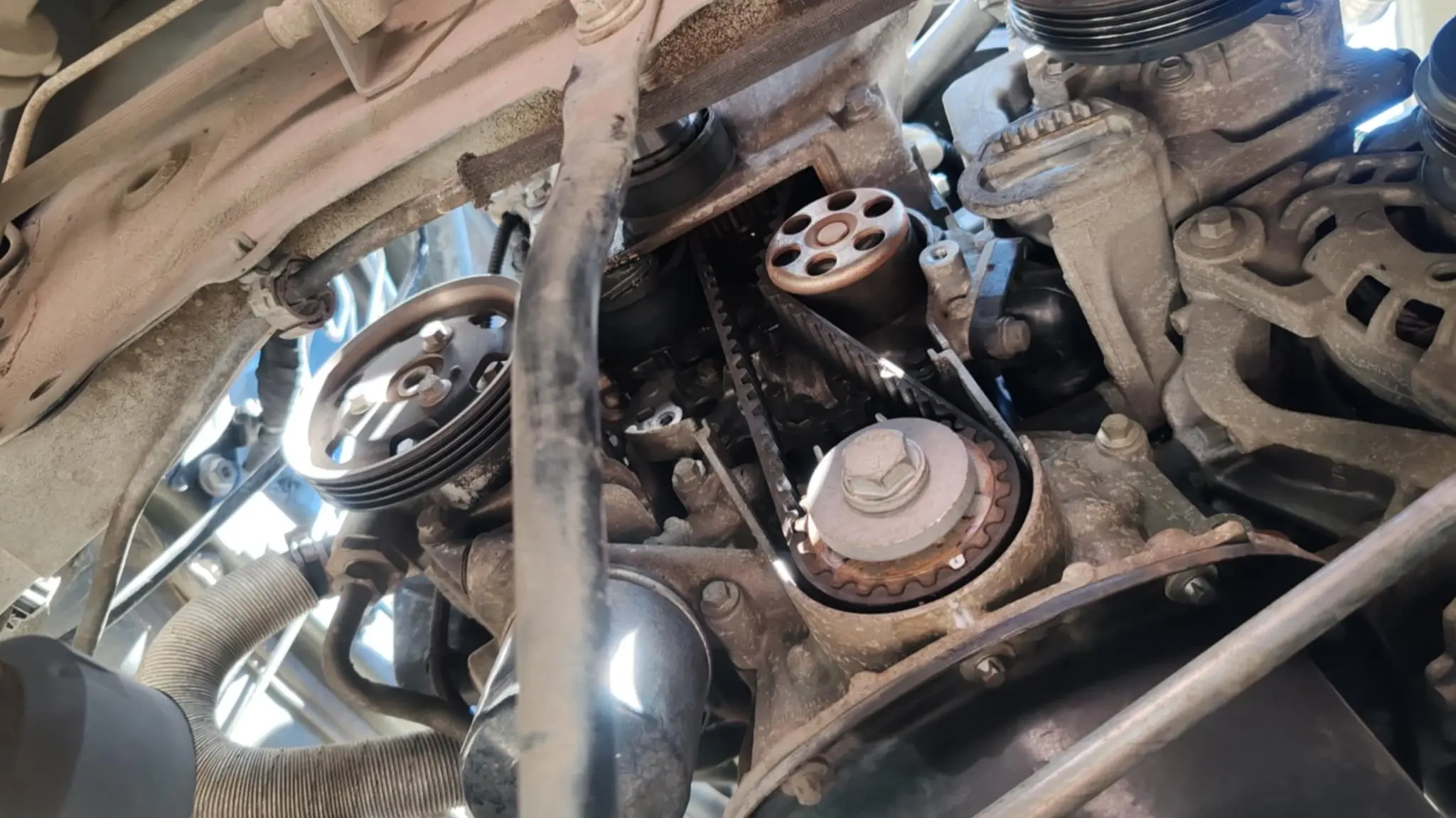 Amint beértünk a műhelybe, azonnal elkezdődött a diagnosztika folyamata. Gyorsan jött is egy meglepetés. Bár a tulajdonos és a márkaszerviz is azt állította korábban, hogy az autó vezérműszíja elszakadt, a szíj látszólag érintetlenül pihent a fogaskerekein.
