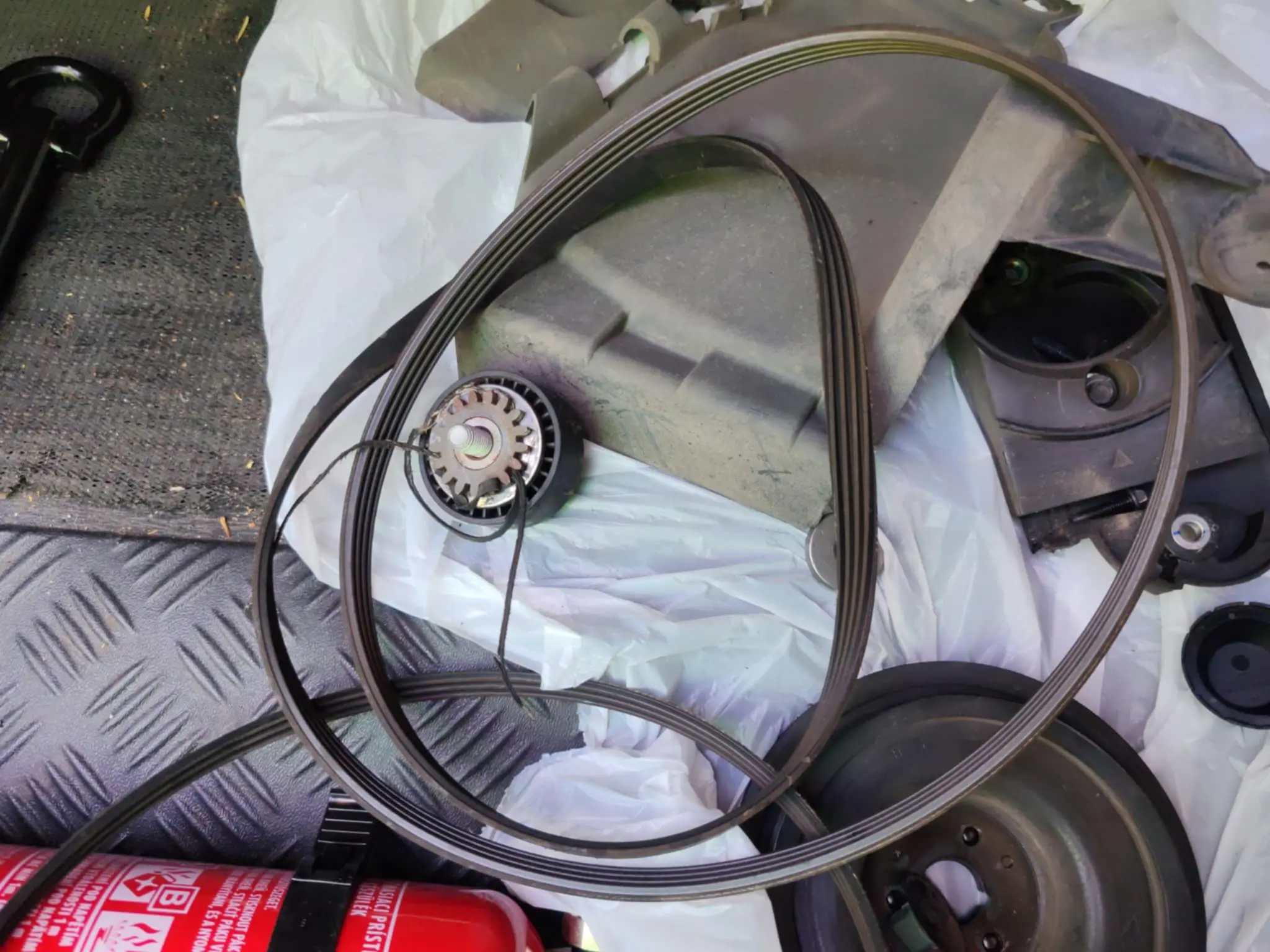 A valódi problémát a segédszíj okozta, amely ismeretlen okból elhagyta a helyét és a már említett vezérműszíj alá keveredett. Ennek következtében a fogasszíj átugrott, a motor pedig leállt. Ezt valószínűleg a márkaszerviz is tudta, hiszen a katasztrofálisan elhasználódott, illetve az elszabaduláskor is megsérült segédszíjat az egyik görgővel együtt a csomagtartóban találtuk meg.