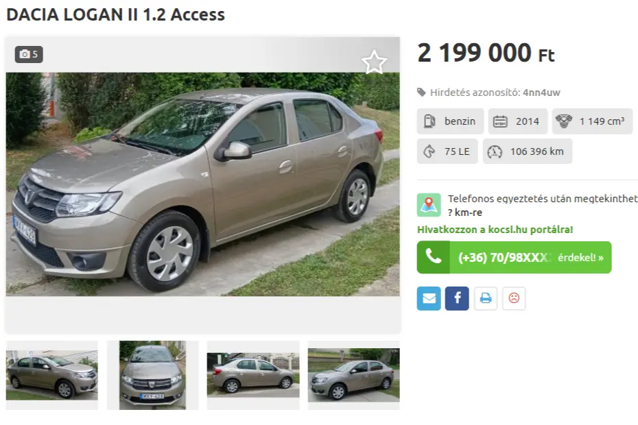 Íme egy nagyon hasonló jármű az egyik nagyobb autóhirdetéses oldal kínálatából jelenleg. Ennek fényében érdemes értelmezni a javítás költségét (Fotó: Kocsi.hu)