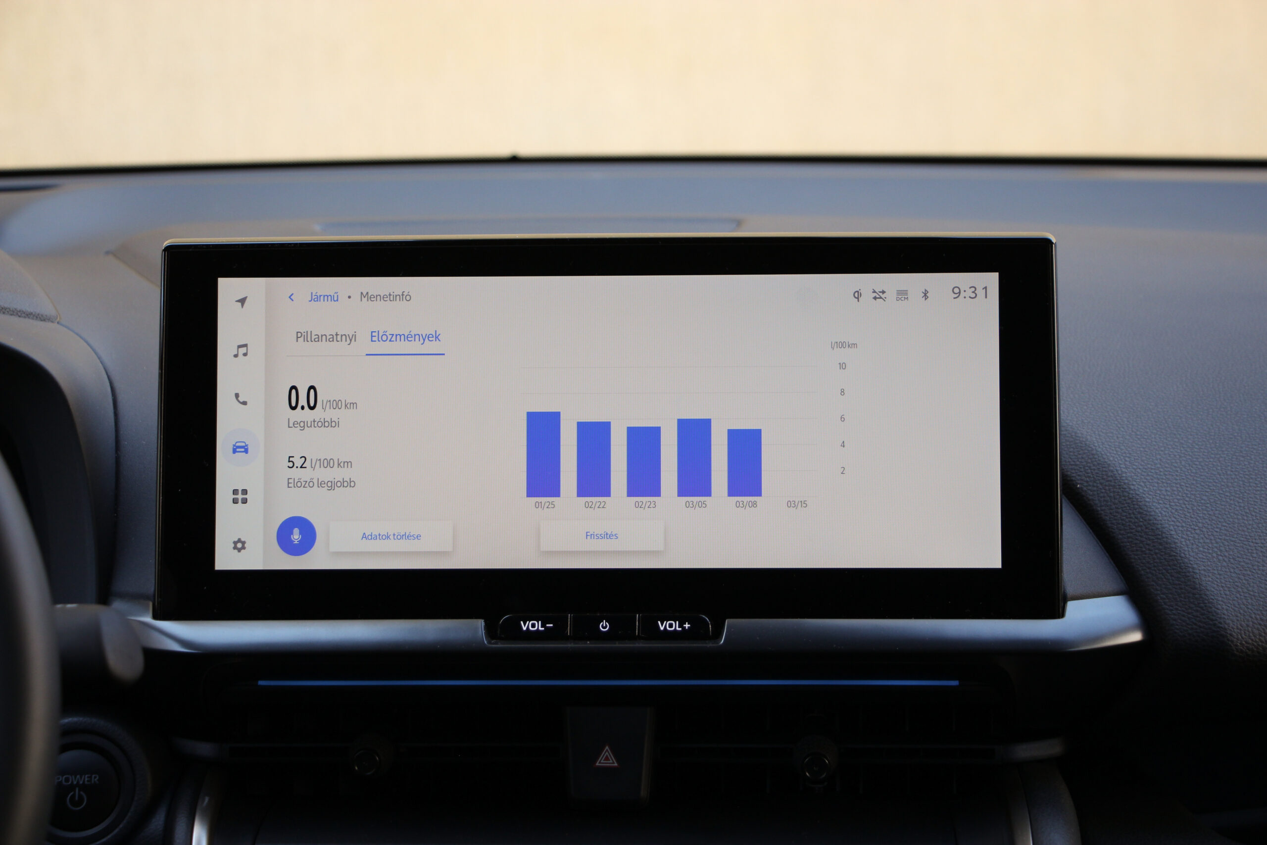 Röviden: igen. A C-HR már az 5. generációs hibrid hajtásláncot kapja, amiben az e-CVT váltó sokkal ügyesebben dolgozik. Most a gyengébbiket hoztuk el, amiben 1,8 literes, négyhengeres benzinmotor kötött házasságot a villanymotorral, így a rendszerteljesítmény 140 lóerő, míg a benzinmotor nyomatéka 142 Nm és ehhez csapódik a villanymotor 185 Nm-re is. Ez sem kevés, bármennyire is nagy számokkal dobálóznak manapság az autógyártók. Hamarosan a kétliteresről is beszámolunk, de előre leszögezem, hogy szerintem mindenre elég volt az 1,8 literes motorral. Városban tényleg sokat próbál villannyal közlekedni, országúton pedig kellően rugalmas az előzésekhez, főleg a már említett okosabb e-CVT-vel, autópályán pedig ugyancsak simán bírja a tempót nem ordít, nem visít, a legnagyobb zaj a szélzaj. Szokványos vegyes tesztkörön, mérés szerint 4,6 literes átlagfogyasztást produkált, ami dicséretes.