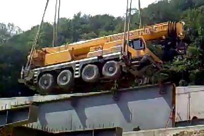 Oroszországban hinni kell - tartja a bölcs mondás -, és igazából a videón látható balesettel kapcsolatban mást nem is tehetünk, csak hihetjük, nem történt személyi sérülés. Történt pedig, hogy a komolynak látszó, négytengelyes darusautót olyan helyre akarták vinni, ahová önerőből nem juthatott el - így jöhetett a hóhér akasztásának ötlete, azaz a "tegyük daruval helyre a darut" projekt, aminek kivitelezésébe azonban nem csekély hiba csúszott. Már javában a levegőben volt a hatalmas szerkezet, amikor a négy sarokrögzítésnél a drótkötelek elengedték a több tonnás terhet, a daruskocsi (vélhetően hatalmas csörömpöléssel) a mélybe zuhant, a kötelek pedig petyhüdten himbálóztak... Mindez megtekinthető mozgóképen is, úgy félelmetesebb, mint szavakkal leírva.
