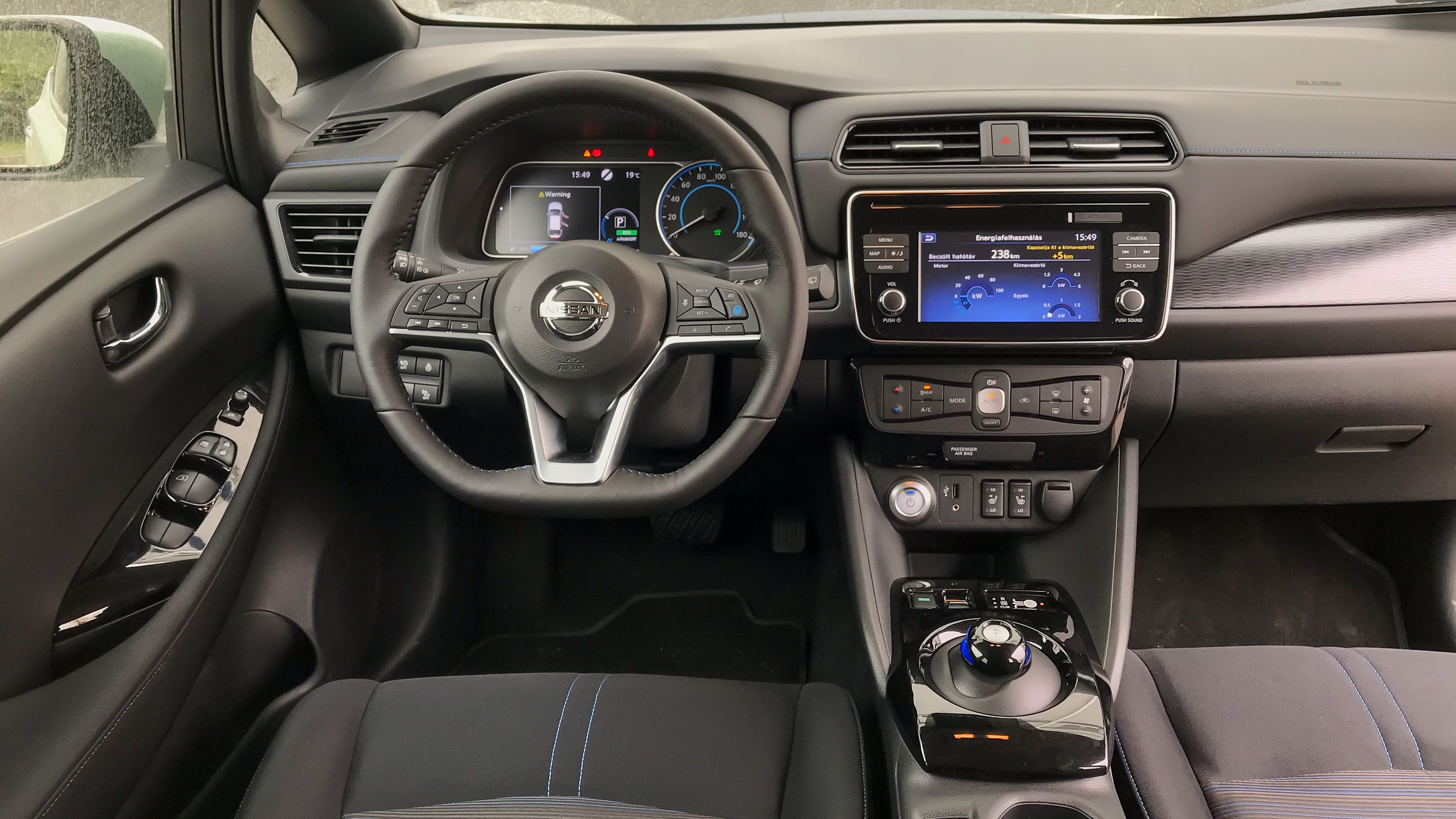 A Leaf műszerfala egyedibb, légkondicionálója a második ellátmánytól alapáron hőszivattyús, navigációt és 360 fokos kamerát is kapunk itt